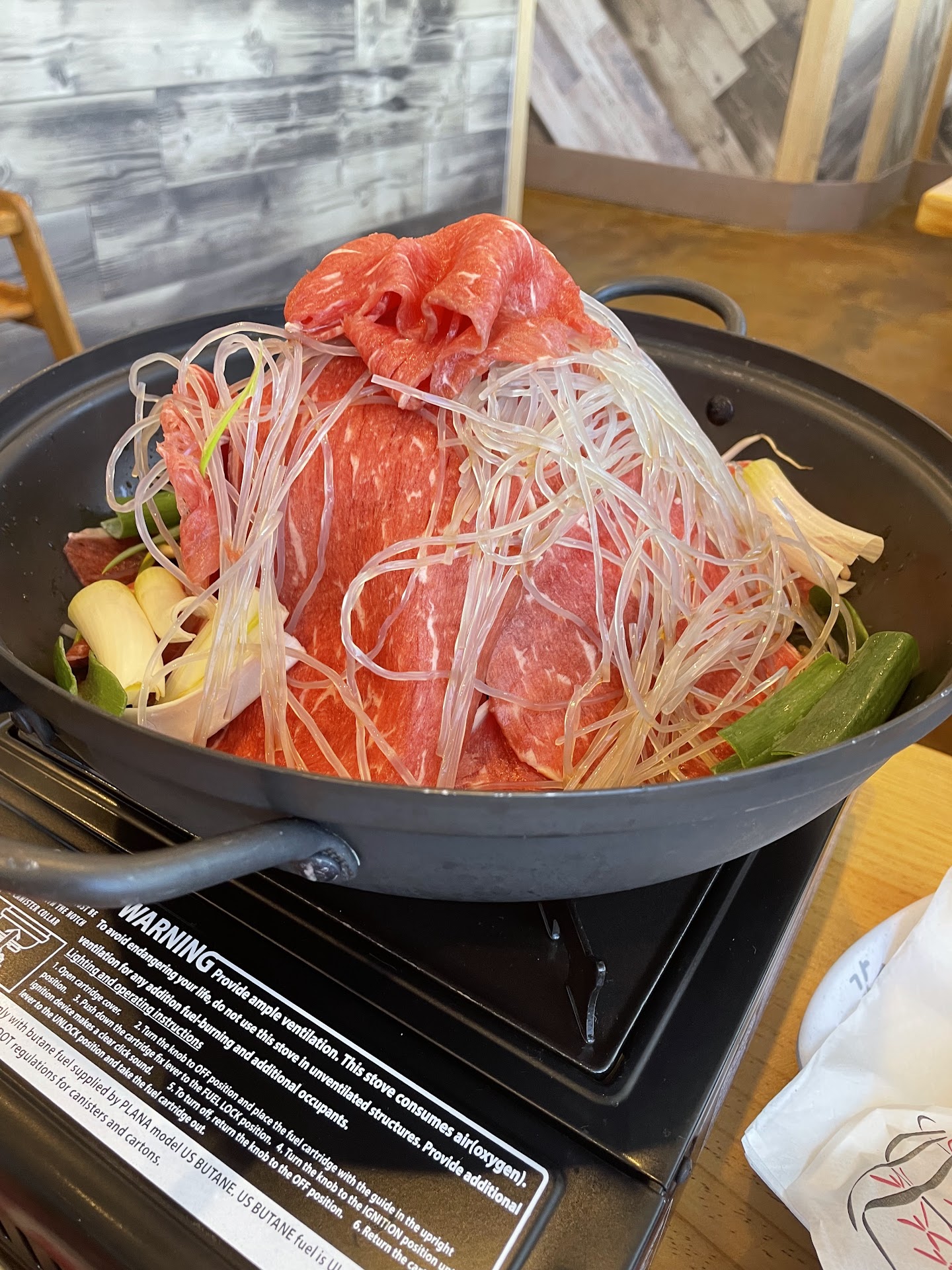 They offer combo set meals, the price is on higher side no doubt about that. But with everything going up, I understand the pricing. We didn't do the combo since we wanted to try the other dishes and combine beef and pork for our bbq. WWe ordered Bulgogi, which was different from what I'm used to since their bulogi beef cut was really big and it comes with glass noodles that cooks on the provided stove top. Another nice touch and it taste really good. The staff even though short staffed made sure to help us with the cooking. We also had beef brisket and 5 layer pork belly which is my favorite, the belly came with the skin, which is how we really want our pork belly, since this is how we have it in Asia