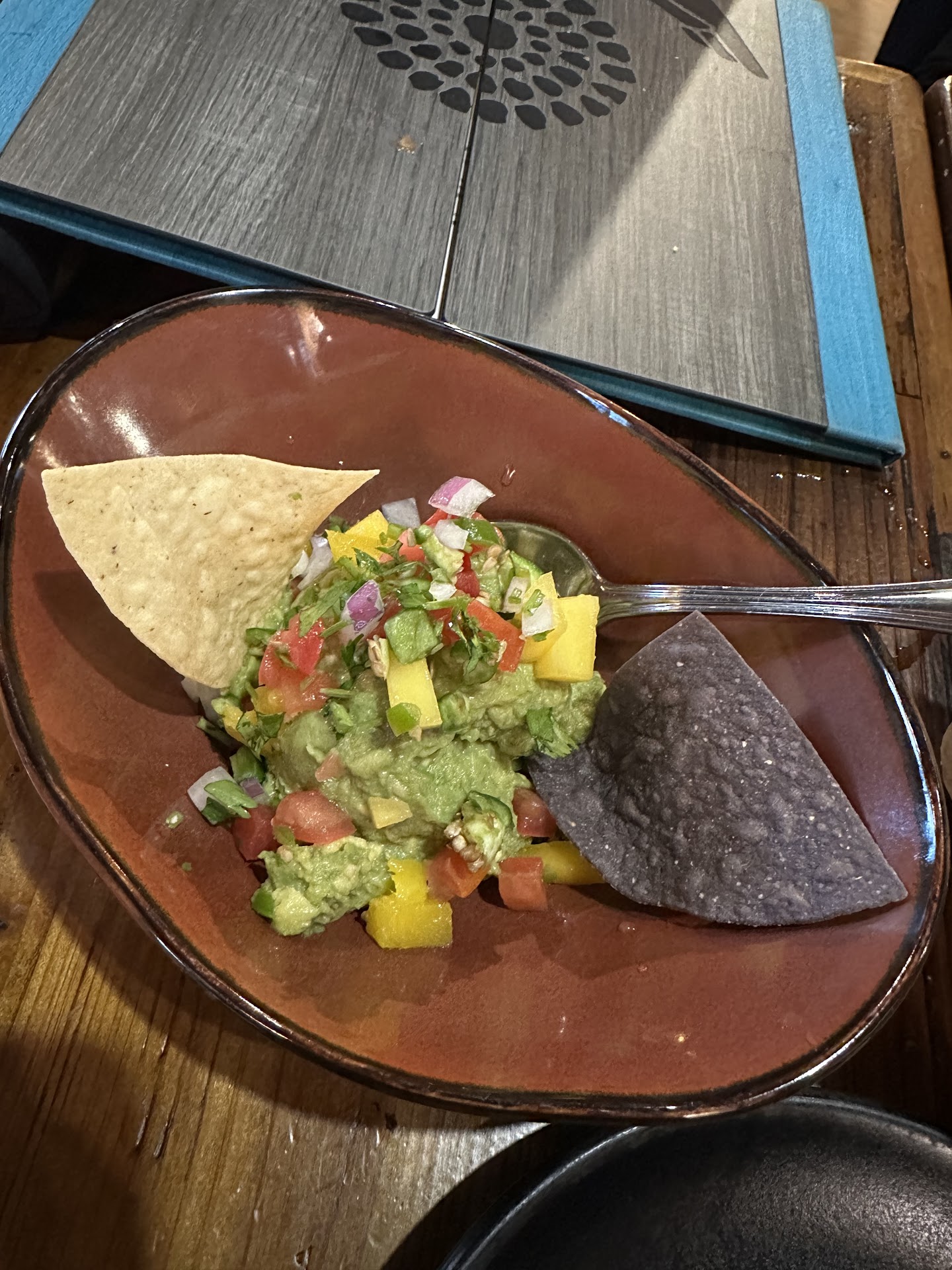 anyways… we placed our food & drink order all at once. while we were waiting i looked around and saw other tables having chips & salsa. about 10 minutes into placing our order i wondered if we were going to get any. spoiler alert: we did not.