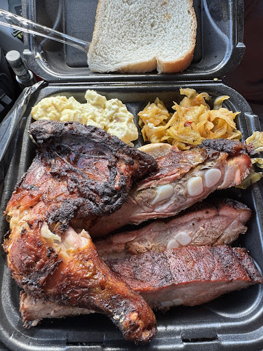I saw a little TikTok video on this on Facebook and was curios as I thought it might be good. I do not live near this but, today I found myself in the area and ran into to it by accident and was very happy to do so. I ordered a 3 meat combo meal and a beef sausage not really knowing what to expect and thinking things might be dry. When I got home and my wife and I both started eating we found that it was not. The seasoning on the chicken and ribs is tasty. I opted for the combo sweet BBQ sauce which we really enjoyed and wished we had more of it. My beef sausage was delicious. Like an upgraded hot dog but nice taste. My wife enjoyed her pulled pork as well. Sides were excellent to. We were both very happy with the meal and likely will go out if our way to get...