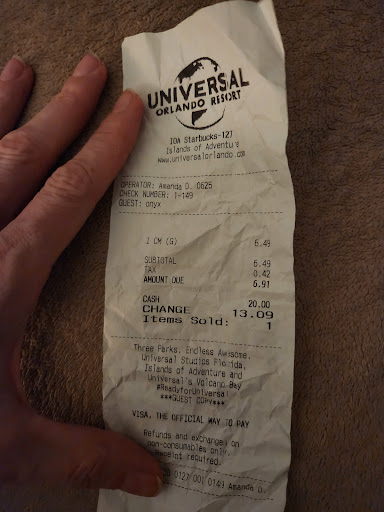 But nonetheless, I’ll say again it is a Starbucks. They have their normal coffees, refreshers, and pastries, none too affordable but very consistent with what can be expected from the chain. It’s nice to sit in their outdoor seating with a drink and relax a little. They don’t have any indoor seating. The Hulk ride is also right there so you can hear all the screams and it’s fairly entertaining. The employees can be pretty hit or miss, they are either incredibly nice or hate their lives, but all the same, this is a classic Starbucks (tired of me saying that yet?),...