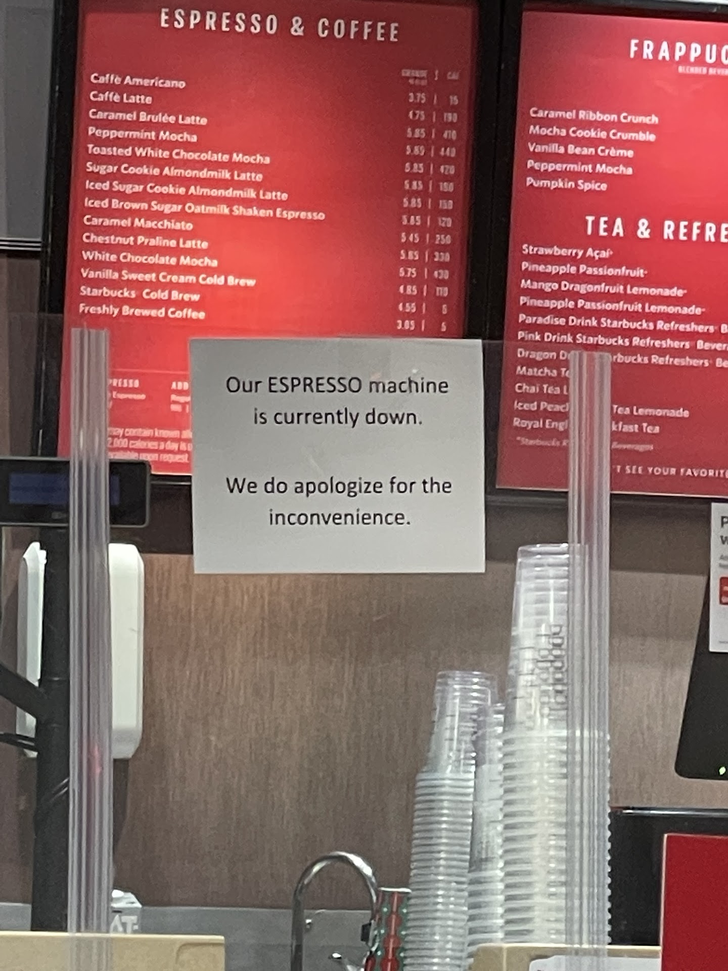 Not so much into the whole homogeneous commercial coffee chain thing but there's a time and a place and this is it.