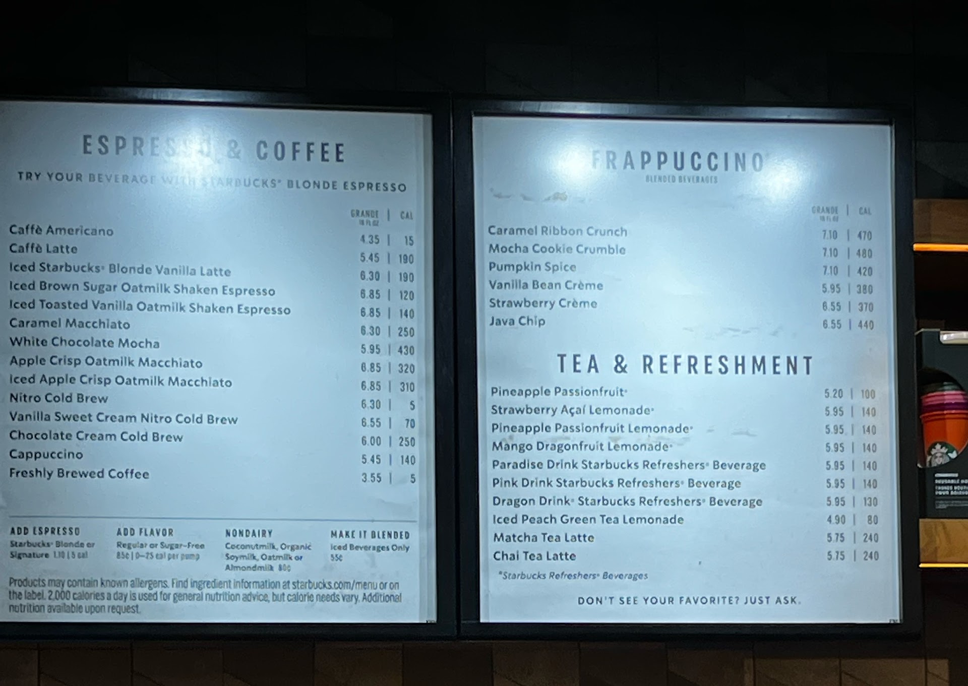 Go to Starbucks get the coffee and skip the airport shop that charges $4.50 for water… spend it on treats or towards a souvenir cup from Starbucks and keep these folks employed!