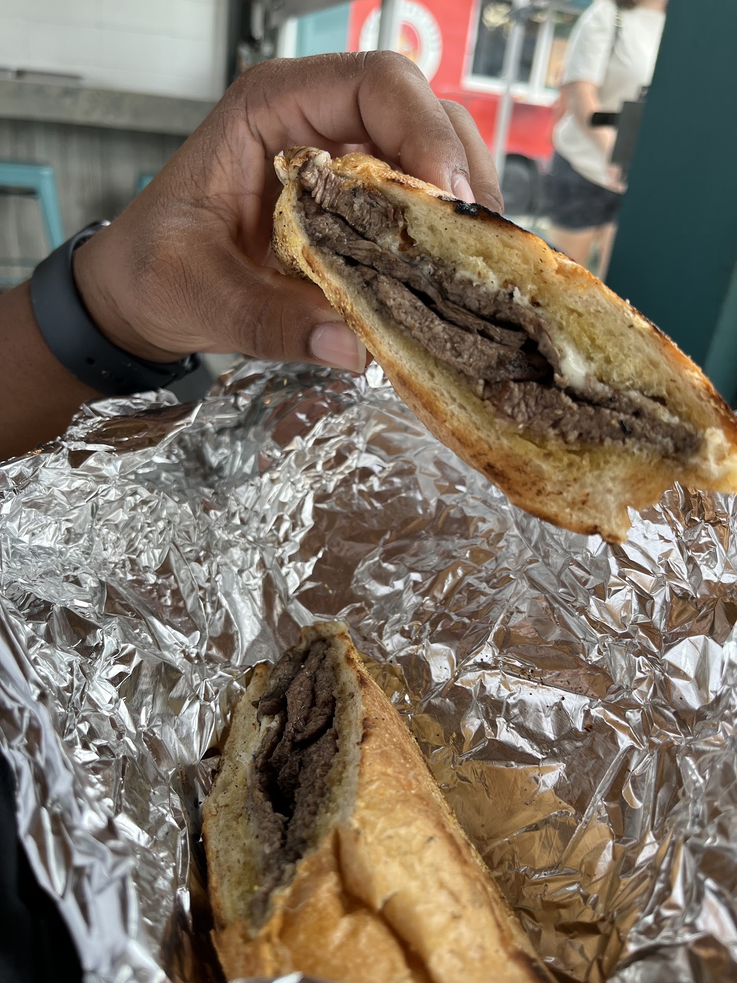 Read moreSteak it Easy is a food truck located in Orlando. Pretty central, but heading out towards East Orlando. My husband got their steak sandwich, that had Picanha steak. I asked the owner what was special about the steak, he replied “juicy, it’s very juicy”. They steak was as flavorful, it wasn’t tough, but the infused flavored wasn’t there; HOWEVER, he has some freshly made from scratch Chimichurri sauce. NOW THAT was like the star of the show. The flavor profile was definitely there. We got our sauce on the side, but if it was on the sandwich (like it comes) it wouldn’t elevated the sandwich. My advice ask to taste the Chimichurri and if you like it, get it slathered on the sandwich…lol. It was so good we got another container full.