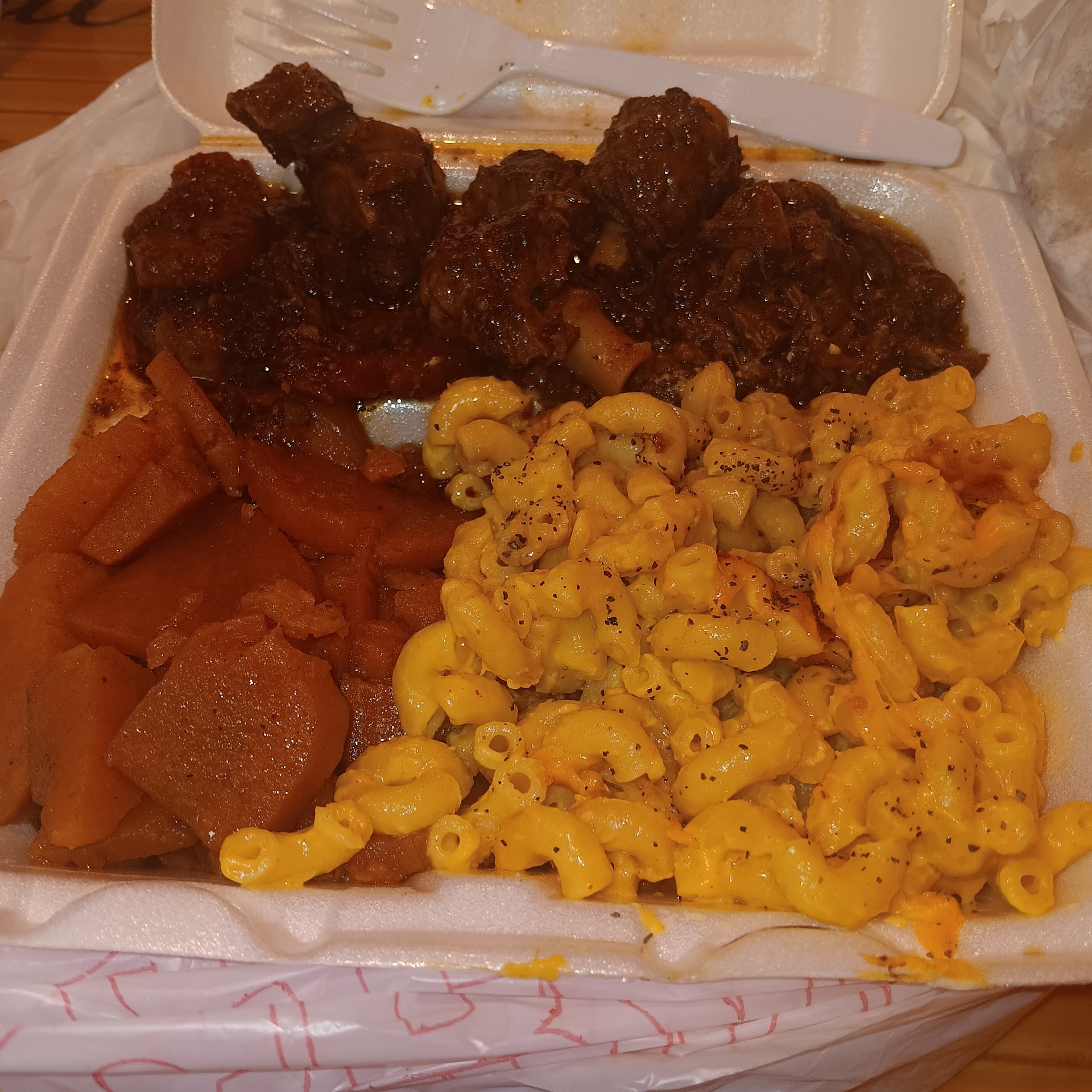 Ā Ā Ā Read moreSo the truth of it is, the place is located in a plaza, then inside of a Caribbean restaurant next to a clothing vendor and that is already too much going on. It was hot as hades in there. The food looked ok but the chicken was cold and soggy. They didnt have cornbread and I was shocked, how in the hell do u call urself a soul food plc and u run out of cornbread? They got 50cent boxes of jiffy at the corner store if u dnt want to mk it from scratch. The collard greens were doable and had a decent taste, the mac and cheese was pretty good, the cabbage on someone elses plate looked fresh but we didnt have it and the atmosphere was kind of busy but decent. They had ethnic music playing that was subtle and nice but man it was hot. The staff were friendly and allowed us to taste the greens bcuz im finicky about collards. Overall it was on but it was not soul food like grandma makes however, in a pinch it would...