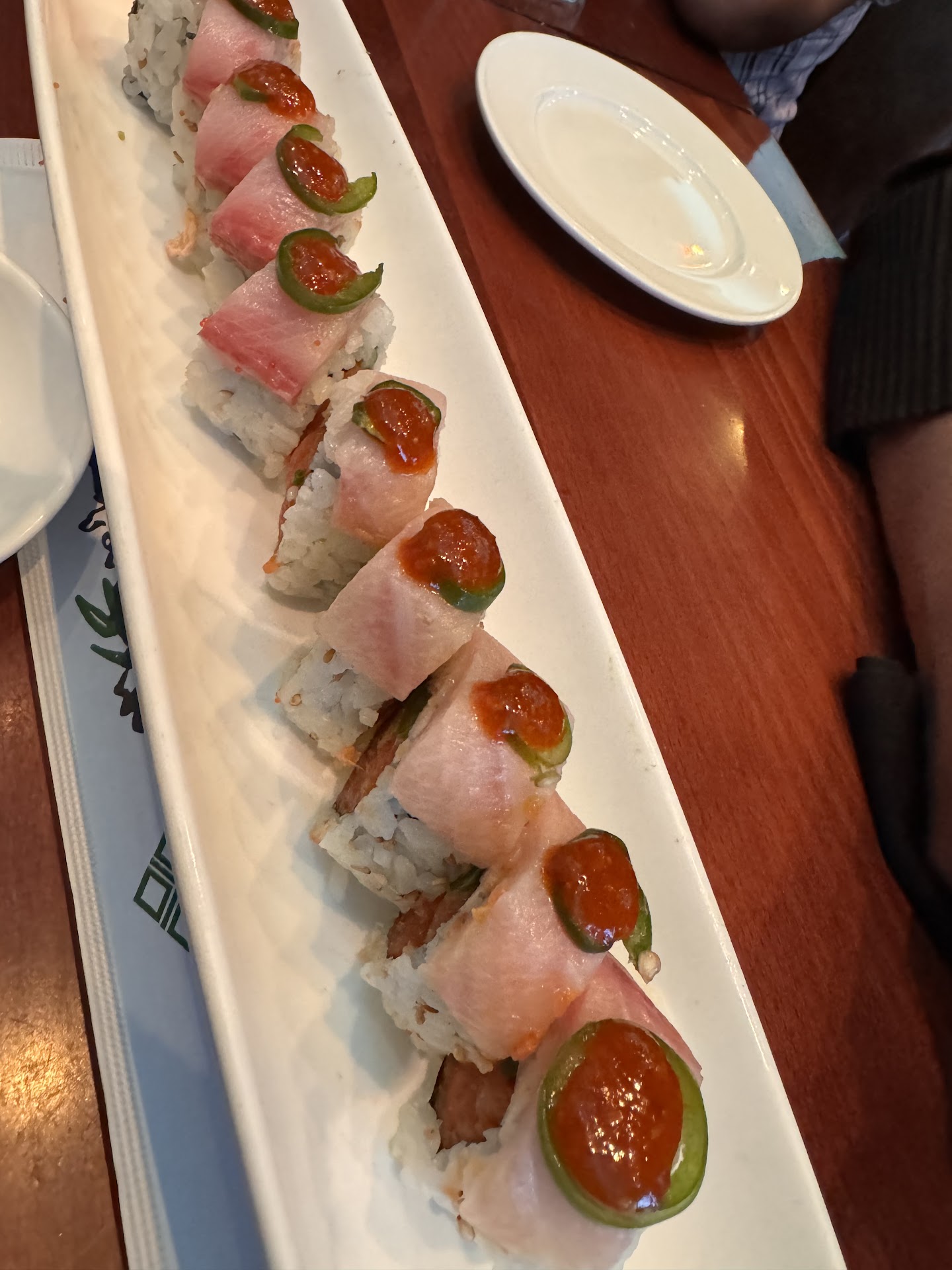 Let me say that this is by far the best sushi place that I have been to so far, I have tried multiple places however this beats all of them without a doubt. The costumer service is excellent and the food is phenomenal, we went tonight for dinner service and it was full. Right away we were advised that it would be a 20-30 minute wait so they took our names and phone number and they told us that we should get a call when a table was ready. So we went to a store near by to kill sometime, we were there for maybe 20 minutes and then we received a call which surprised me because I am used to waiting longer. We went in and got seated right away and our waiter Diana came over shortly after with the menu, she was phenomenal and she definitely deserves a raise 🙂 she was very polite and timely with her service. We did not have to ask for refills once and she always made a priority to walk by our table to see how we were doing. Now for the best part the food, let me tell you that the quality of this restaurant is top notch, all the sushi that we had was well balanced and we could taste every ingredient with every bite and never once did i feel like it was overwhelmed with sauce. Other sushi places that I have been to always have so much sauce that eventually I get overwhelmed and scrape it off or if the sauce comes off it does not taste as good, however this sushi was just phenomenal in every way. It was well put together and all the ingredients complemented each other so well that each bite tasted better than the rest, I took my time savoring every bite. We also ordered the creme brulee and lets just say that it did not disappoint either, I have tasted it in other places and this is by far the best one that I have came across. It is so smooth and rich that every bite tastes like fluffy airy pudding, but what makes this even better is that the top is so crunchy yet not overwhelmingly sweet nor does it have a brunt taste. It is like a fluffy crunchy cloud and it is well balanced to perfection, it has just the right amount of sweetness and the right amount of crunchiness. It is to delicious to put into words so whenever you go in getting it is must, I would definitely be coming back and recoding it to all of my friends back home. Thank you Diana for all your wonderful service and to all the hardworking staff for making such a wonderful meal and to the person making the creme brulee you have phenomenal skills you have many...