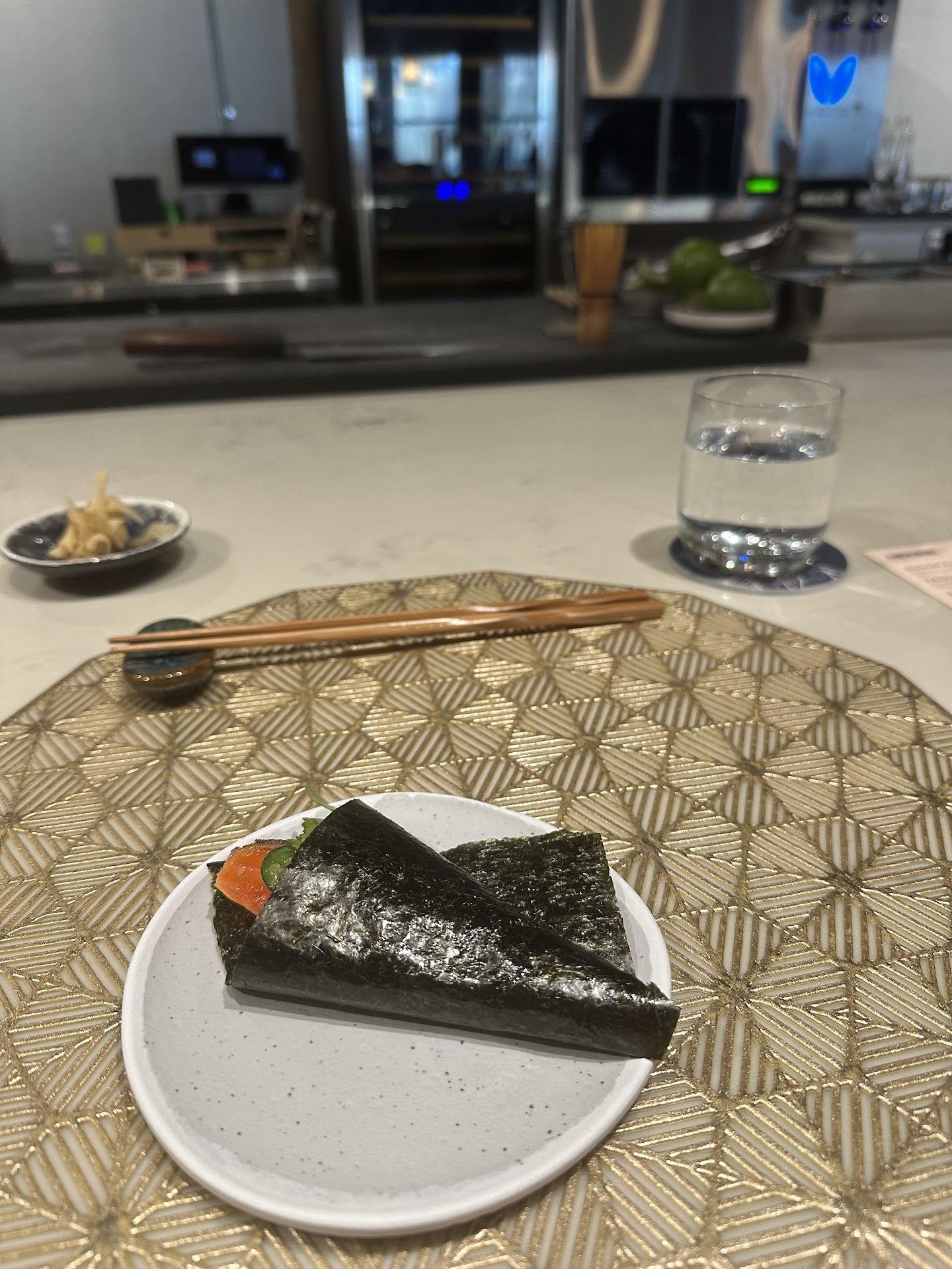 The chef making our food did wonderfully and was fun, one of the better parts of the experience, but he was bogged down by being the only one making the handrolls for a dozen people. It was easily a good ten minutes between handrolls and nearly took 30 minutes for our first ones after we handed over our orders. Another chef handled some rolls for the group of 5 and then cleaned up and closed down as we sat waiting there for our handrolls.