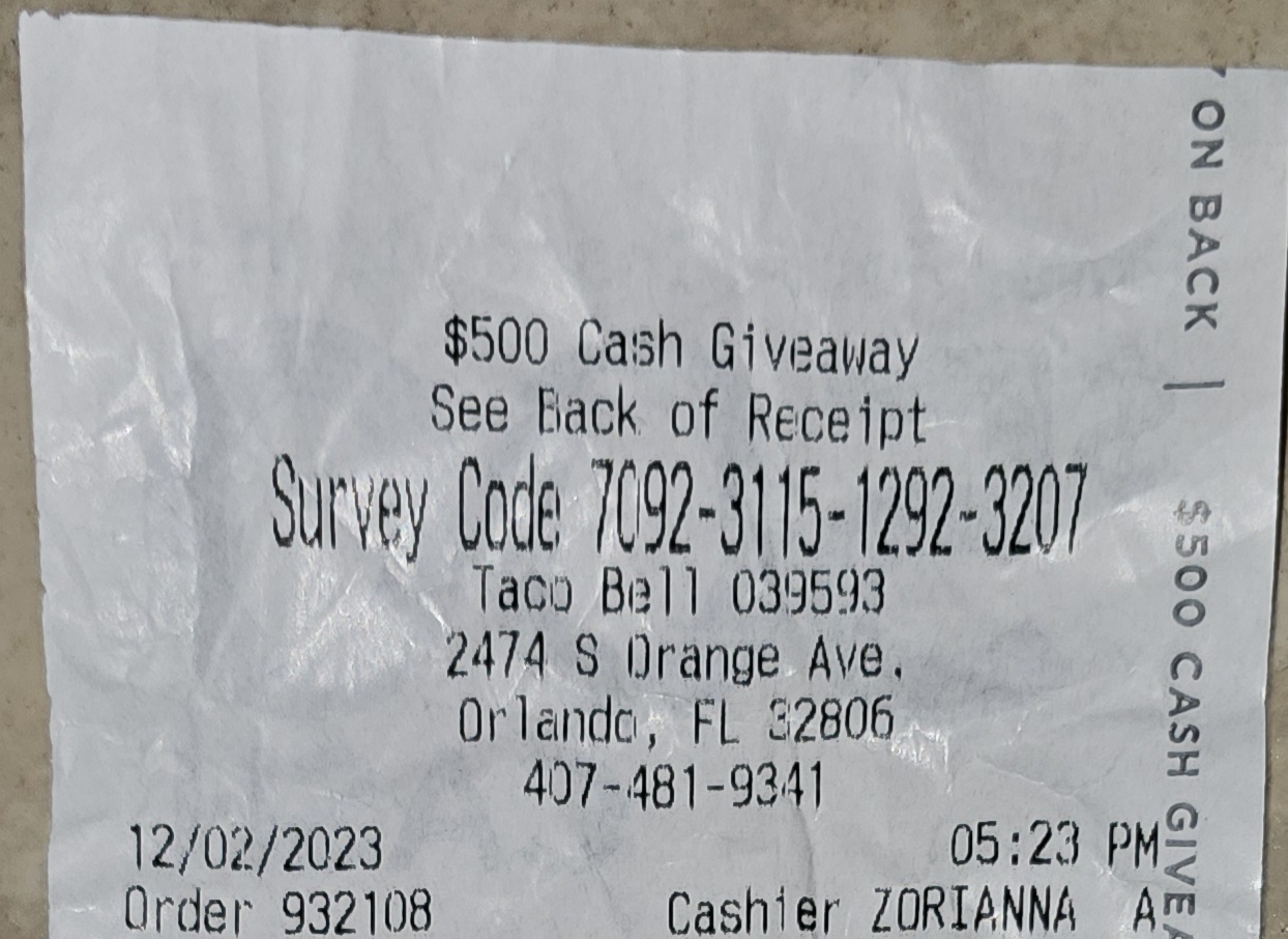 I took a different bus route specifically to take advantage of the free cantina crispy chicken taco (please try these it's seriously restaurant quality juicy HUGE chicken tender...amazing the avocado cream sauce and they make them HUGE). OFCOURSE it starts pouring at 530 Orlando summer after work from downtown to SODO.. I make it there and my app is frozen so..I show the girl at the counter that I "have" the coupon ... Not only did she honor my app coupon...she gave me the crunchy taco with extra lettuce and the crispy chicken... FREE. I tried to pay her twice...she wouldn't accept saying she was sorry for my troubles... Turns out this very cute young girl is the general manager her name is Ricki...I asked another patron to find out for me because of her obvious modesty. The three others that wandered in dry as the rain stopped as soon as it started saw it all and called it my good karma...Ricky here it is paid forward to you. Thank you for making me feel like a truly wanted customer and going out of your way with such a small crew. There are 2 taco Bell's in central Florida that can't be missed. The other is on McCoy road right around the orange Ave and sandlake juncture (my usual based on work travel). The manager there is named Rose and quite frankly they make me feel like family...it is so obvious at both these locations, the great manager rub off to the staff. I was there as well this week Monday frantically getting a call for an impromptu Zoom job interview while I was on lunch for my current job! Trying to get it for a month!!!! Rose turned the music down and put me in a corner booth with a wet floor sign so I could have that opportunity RIGHT THEN..not kidding. So, needless to say after a great burrito and interview...even though my NEW job (yep) allows me chipol....um yeah 3 times a day...and is on the other side of downtown in Thornton Park...I'm stayin' with Rose and Ricki. For those of you that don't know...with the custom options they offer most free of charge sans maybe the smashed avocado, Taco Bell is one of the healthiest (if not the most watch the cheese people ;) and DEFINITELY the most affordable chain out there. These two experiences plus their beautiful redo on the interiors make it a no brainer for me. Thank you taco bell for improving my life...not kidding. Enough so it was soooo worth taking the ten mins to try and tell the world. I've always wanted to start a compliments board instead of how everyone is so willing to take the time to complain...maybe I...