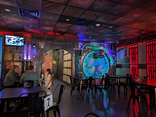 Food? Phenomenal. We ordered 2 of the space burgers. The spicy fried chicken sandwich and "the" cheeseburger". They were really good! I especially love the novelty of it being shaped like a UFO saucer. The spicy fried chicken sandwich had a wonderful kick to it.
