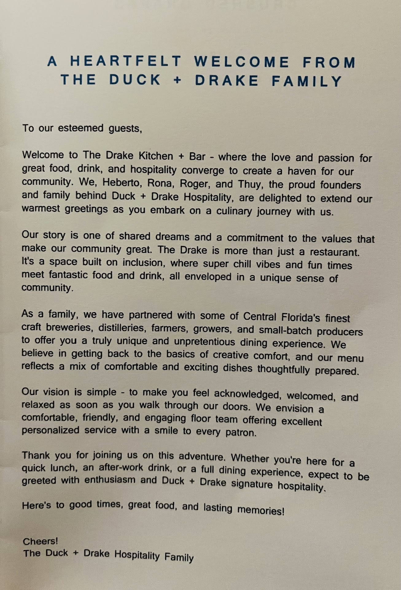 From the moment we stepped into The Drake, it was clear that we were in for an exceptional dining experience. The warmth and professionalism of the staff set the tone for the evening, effortlessly accommodating our large party with the kind of grace and efficiency that speaks volumes of their training and dedication. This restaurant is a masterclass in hospitality, catering to both small gatherings and large groups with equal finesse.