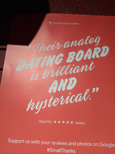 Read moreIt's my fave local bar in Orlando. They have cold brew coffee and this non drinker appreciates it! I love the "dark" vibe and the bar tenders are great. The pic I attached shows a poster hanging above the "Analog Dating" wall. It's unique and hilarious. The poster is a review my partner wrote several years ago and the owner displayed it. We happen to sit right under it'! What a fun...