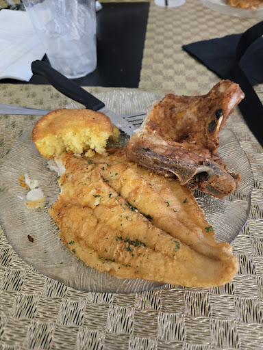 Tender Loving Ribs with collard greens and potato salad. Hands down, the absolute best collard greens anywhere! The ribs are cooked to a tender, fall off the bone finish, brushed in a mouth watering Motown BBQ sauce. Every bite is better than the last. Let me tell you something, I don't eat potato salad. Save the cornbread for last! It’s the best.