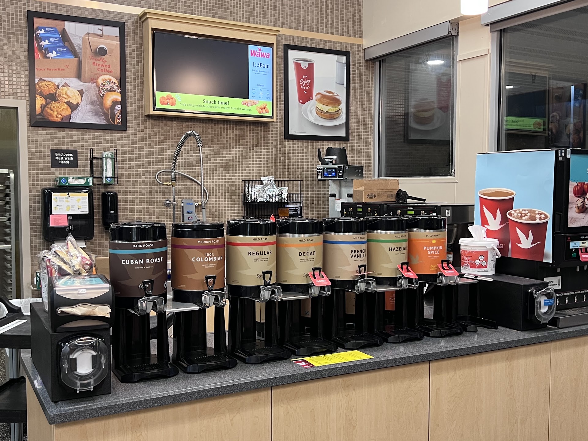 And yet once more. Here we are again. I should write a book about this Wawa. Why is it even still open? Can you believe it's early in the morning this is the time when people need coffees cappuccinos stuff like that they just don't have any. They just don't have it on the machine and it's almost 6:00 in the morning and I got it turned off. Are you freaking kidding me? After you click on hot beverages you got nothing for the specialty coffees like the lattes and cappuccinos. It just takes you to this garbage about the boxes to go of coffee which is not what I'm looking for.