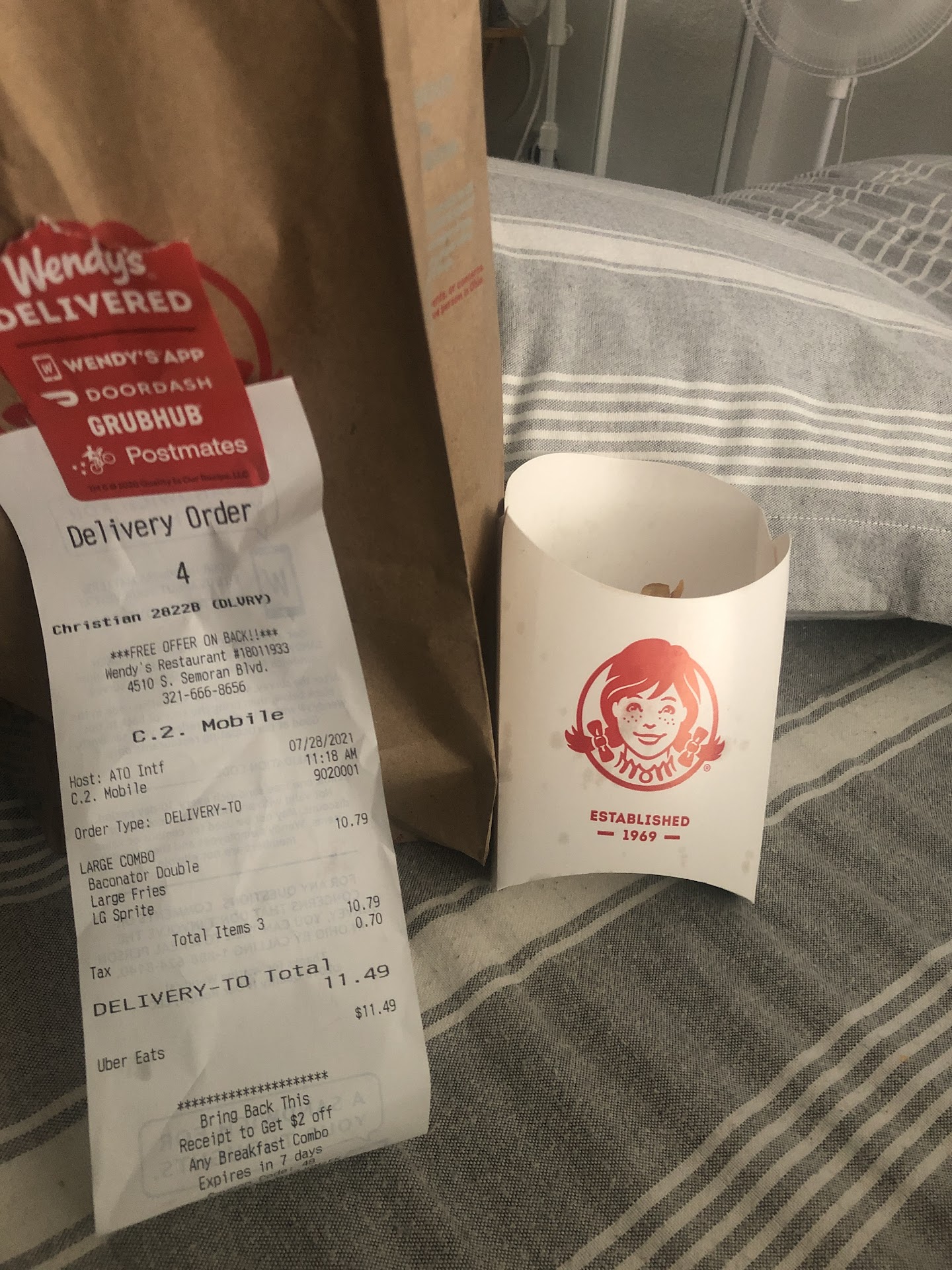 Read moreI've never had a problem with Wendy's except for this one. I went to go inside the Wendy's and it was closed there was a line of angry customers. We decided to go to the drive thru. I used to work at a Wendy's so I understood the frustration. Unfortunately when I ordered my food, I was polite to them and I ordered but the politeness was not reciprocated. I paid for the food, was not given a receipt. I ordered a large Coke at the drive thru that I never got. When I paid I asked again, and was not given one. They pulled us up to the line. They brought out our food, I asked for my large Coke and the receipt. The next person who brought it out had bright orange hair and was rude, I said have a great day and she gave me a sarcastic smile and rolled her eyes. It said the cashier's name was Nawal. She completely ignored that I asked for ketchup. She half filled up my drinks. And she was more focused on getting me out of the premises than getting my order right. I will not be returning to this Wendy's. I was very disappointed. I've never been to any fast food restaurant and been disrespected this badly. The food was also very cold...