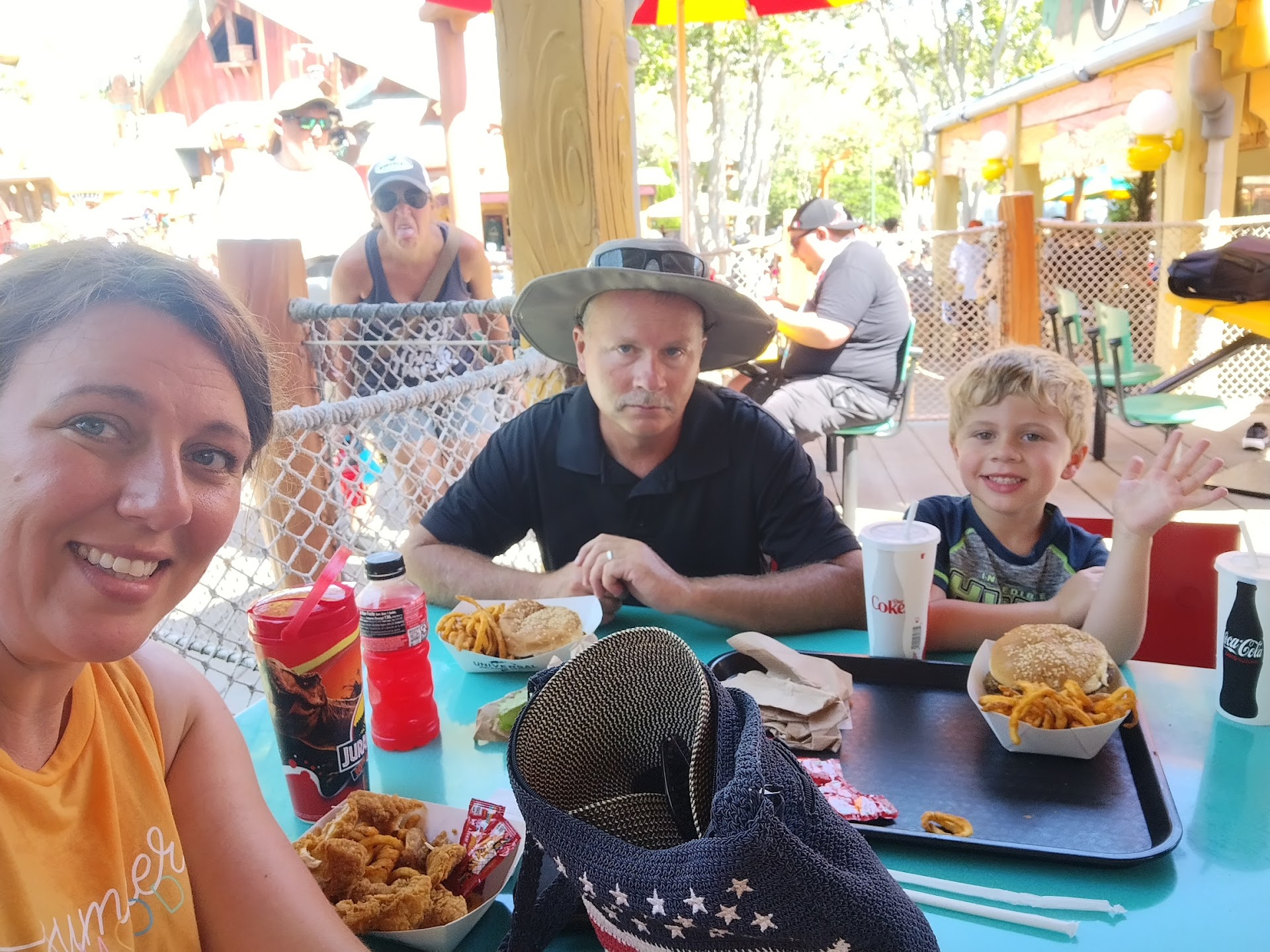 We had chicken tenders and curly fries. The food was pretty good and reasonably priced for theme park food. The service was extremely slow. We were a few orders back, but there were at least 7 or 8 baskets each of chicken tenders and fries. We waited on burgers for the other parties in front of us. I understand first come/first serve. This is not the fault of the employees working the window or kitchen, they were plugging along just fine. I’m assuming that this is a process put in place by the establishment. I just think that the whole process could be...