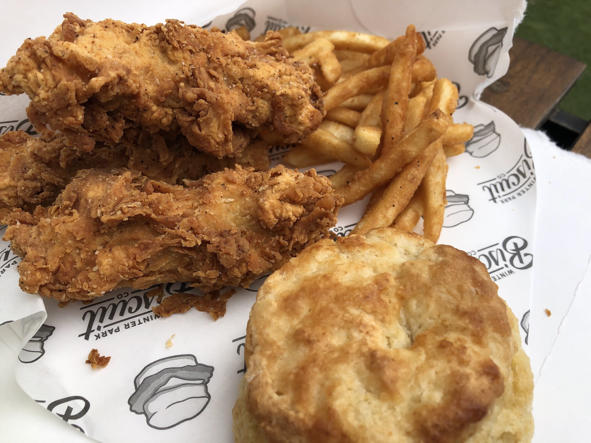 What did I get Disclaimer: I am plant based... and flexitarian, so I do occasionally eat meat I got the WPBC 3 piece tender. This tender comes with pieces of Chikn tenders, a biscuit, fries and a sauce (I got herb mayo). The biscuit was good in terms of texture. I was surprised that the biscuit was so sweet... I had imagined it being more savory from all the other biscuits ive had but this was very sweet compared to those. On to the tender, the tenders batter was very crunchy! Super crunchy, they hurt my poor teeth (in a good way). The meat on the inside I don't care for... no comments really. The fries were really good, very crispy. They got the heat of the oil down! Makes the tenders and fries super crispy. The herb mayo was surprisingly very herby. I really like these vegan oil based items, they aren't as oily as the "real" stuff...