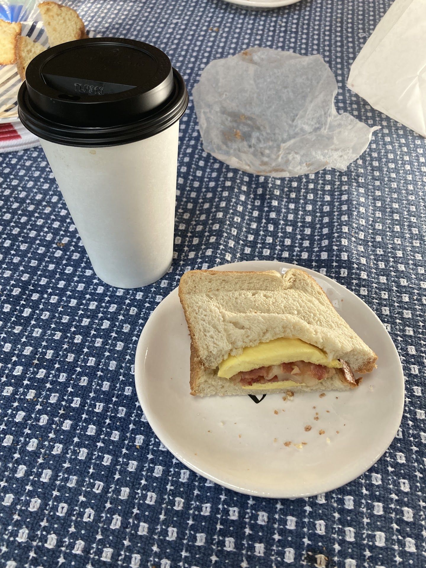 As far as the food goes, it was okay. The blueberry muffin was fine. Our breakfast sandwiches were good, but I felt they were on the pricier side for an item that was pretty much the same as it would be anywhere else.