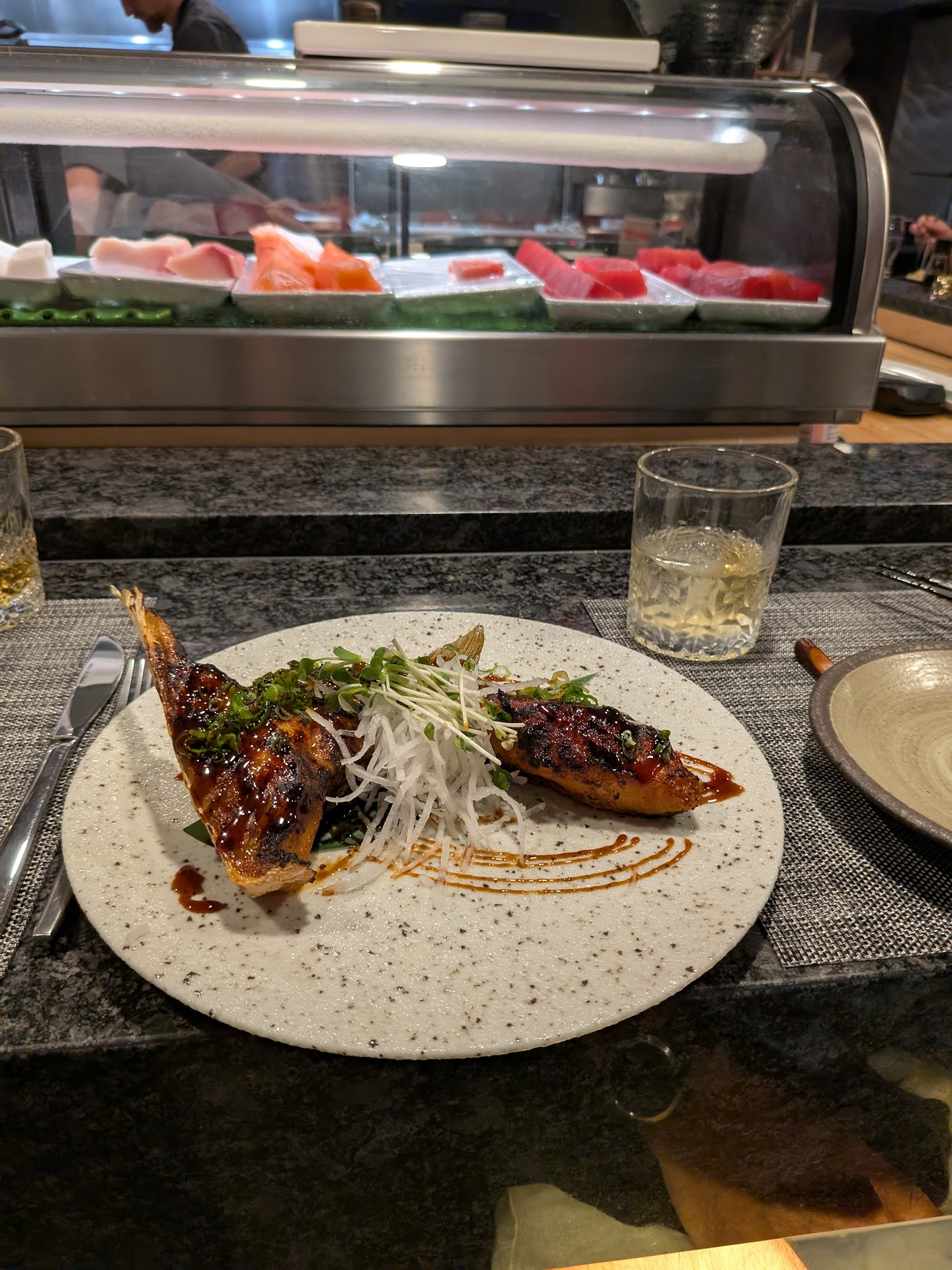 Now on to the food! Tried the pork & cabbage dumplings, which were deep fried. They were tasty, but I preferred the shrimp shumai since they were steamed. The dipping sauces for both were very tasty. (Speaking about sauces, I do appreciate the soy sauce they use at this location. It tasted better than what you normally would have, like Kikkomon.) I had a spicy tune hand roll which was amazing. I really loved the spicy mayo in it. For the rolls, I had the Double Dragon, which was again amazing, and the Serpent for me was the show stopper. I absolutely love torched fish, that flavor it adds is wonderful. I ended up ordering another Serpent tonight because I was in love with it so much, and it didn't disappoint the second time! Uni was one of the specials tonight which I figured if I'm going to try it this would be the best place to do so, and I wasn't wrong. Very interesting and flavorful. Wasn't what I was expecting uni to taste like seeing that I hadn't had it before, but was a pleasant surprise.