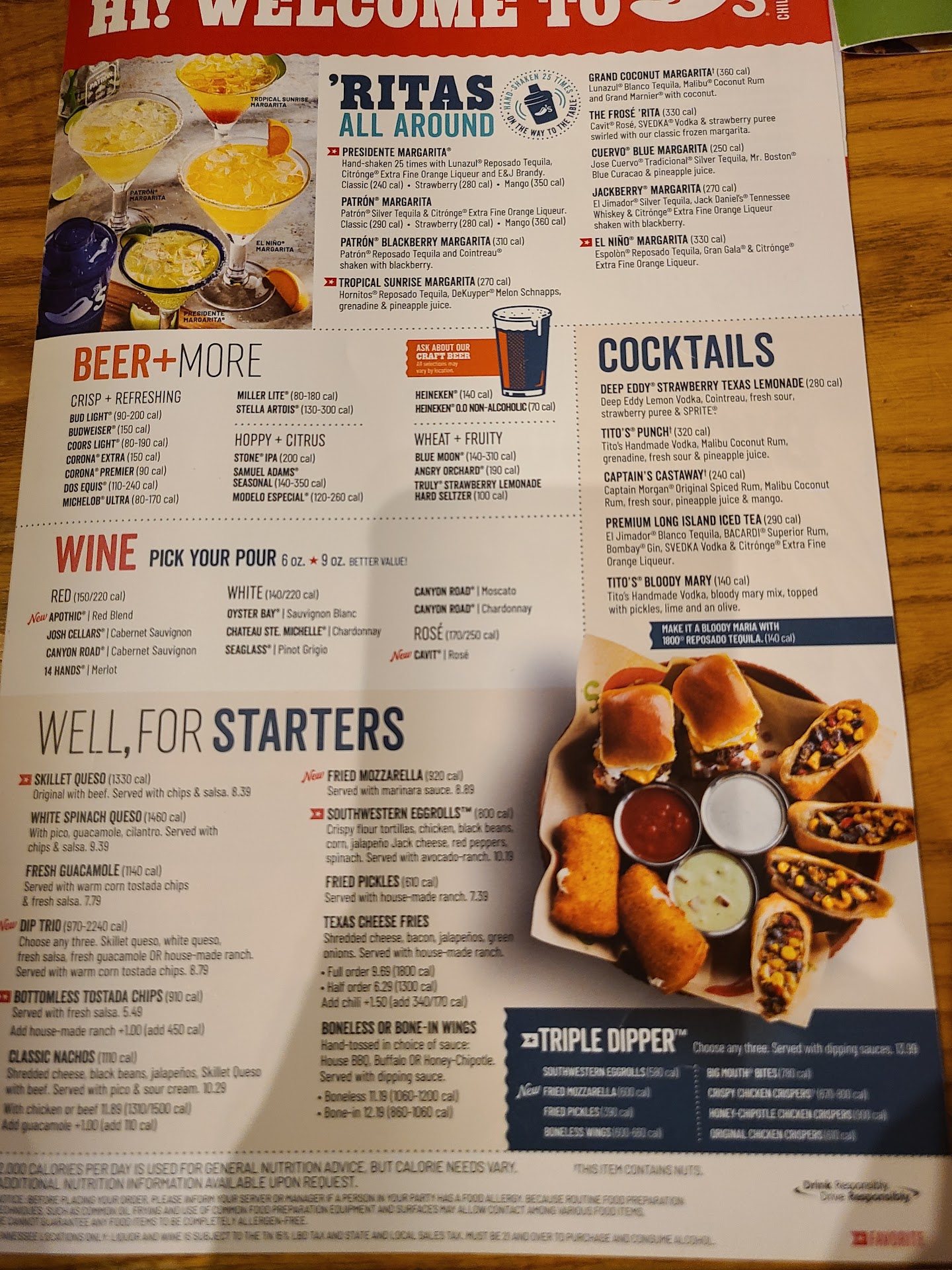 I only took one picture (attached) it does have the menu, one of the clumpy chip masses, and the original sweet tea with lemon. That's all the disappointment and praise I have for this chain. Take it as you will. I've added my experience to help others have a better experience. (At least have an informed choice option available.🤔)