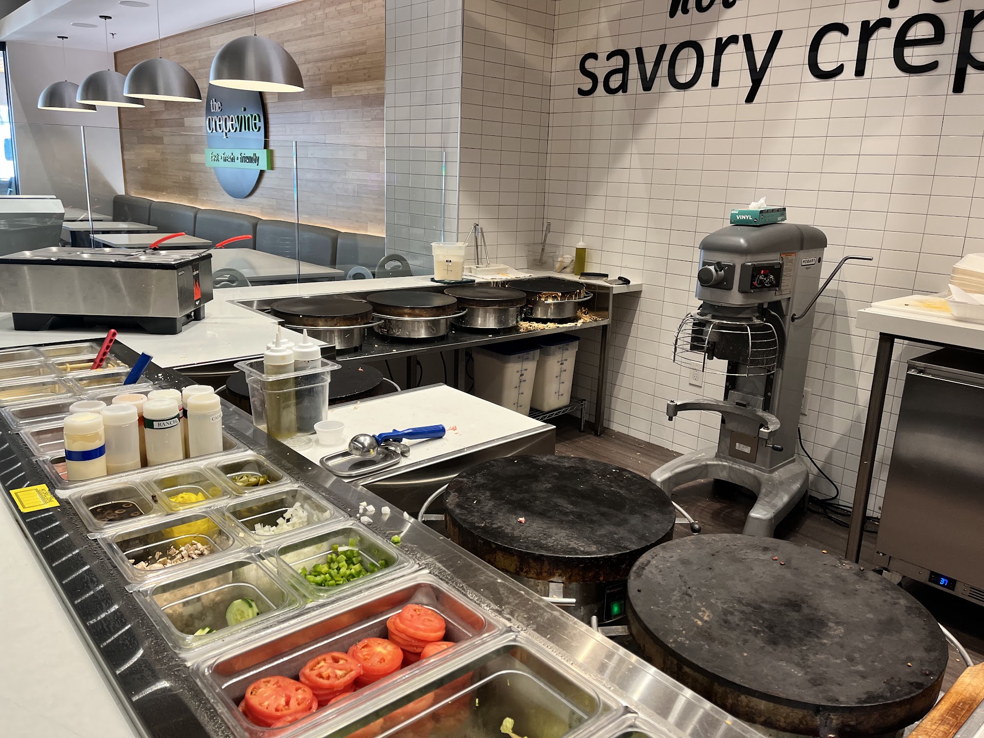 Ā Ā Ā Read moreI've always enjoyed a good crepe, but this place has redefined what a crepe can be. Crepes have always stood out to me as a vehicle for sweet, sugary nonsense. While this place does nail the sugary crepe, they hit the world of the savory crepe out. of. the. park! We got the wobbles (savory turkey crepe) and the munchy crunchy (peanut butter, honey, granola) and both were amazing, but the wobbles being the absolute best. The best part being that these dishes come relatively cheap, with each dish being between $10 and $16, which is crazy considering the quality of experience you are getting with each dish! The interior itself is really clean and sleek, and the green and black color scheme looks really nice! Along with the superb interior design, The Crepevine gave one of the best customer service experiences I've ever had! The employees are super friendly, and give great recommendations for menu items and substitutions.