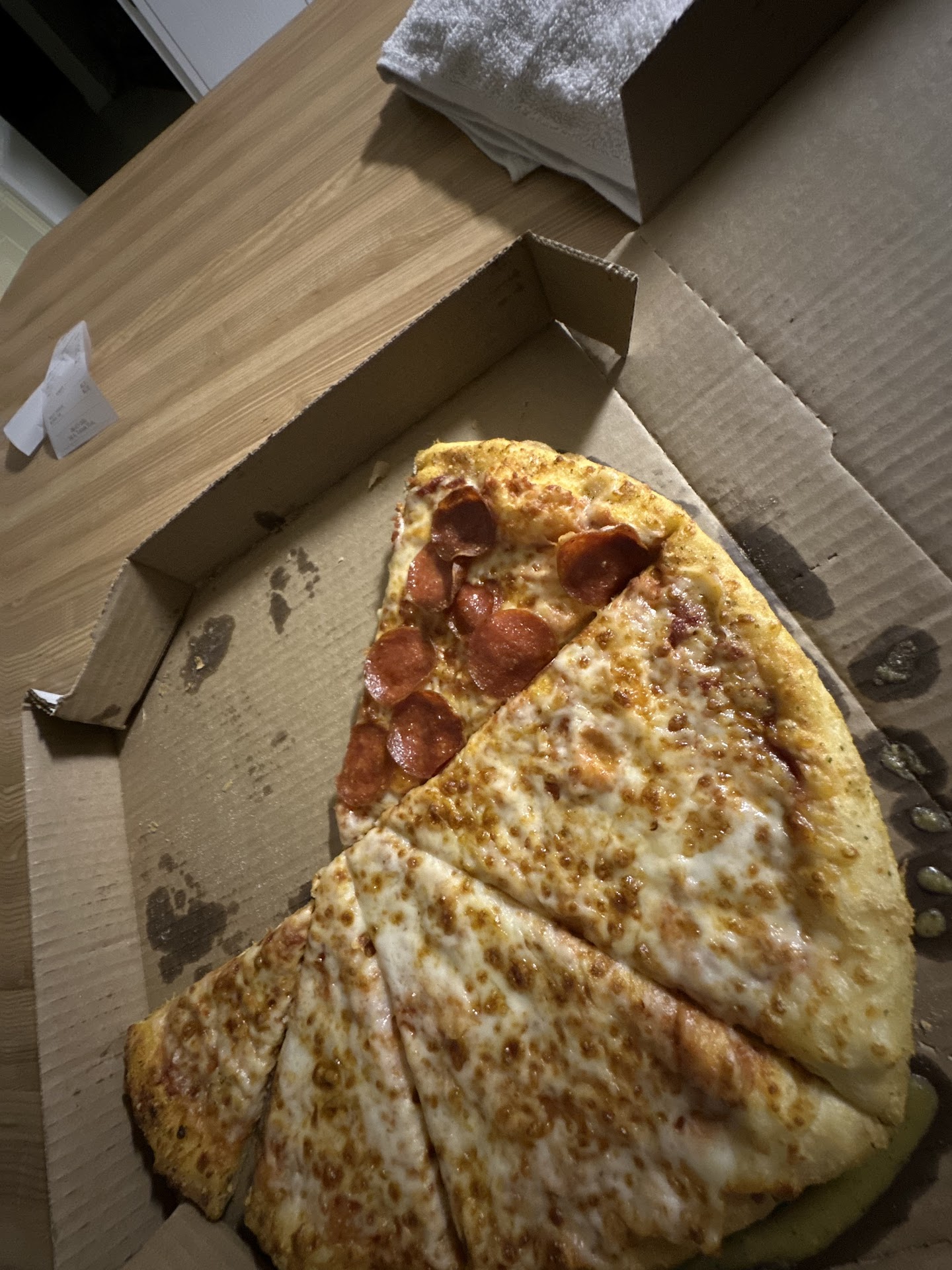 Read moreWe have always had good pizza and good service from this location. I hate to say it but after the service tonight, I don't think we will be ordering from this location for awhile. We ordered 2 hours before closing time and we got our pizza almost 75 minutes after ordering (we were told 35 minutes as usual). It was burnt, and our stuffed cheesy bread was mostly bread. We had maybe a half cup of cheese total. The customer service was also quite pathetic tonight. They were rude when we called to order (we could even hear them being rude to another employee), and they were rude at delivery. Even if they were really busy, it doesn't call for an attitude like that. People rely on good service, even under times of stress in the workplace. Even your coworkers don't deserve to get the bad end of...