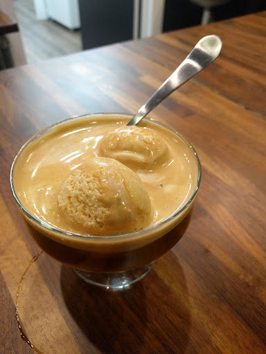 Read moreOrmond Beach, FL. This coffee shop is great for introverts and artistic, creative souls. Eclectic paintings, pop art prints, photos and plants adorn the space. You can sit outside in the back where there are about four or five cafe tables. There is a little room to the left as you enter from the parking lot side, and a long wooden bar with a couple high top tables and an armchair seating area near the front of the shop that faces the busy street.