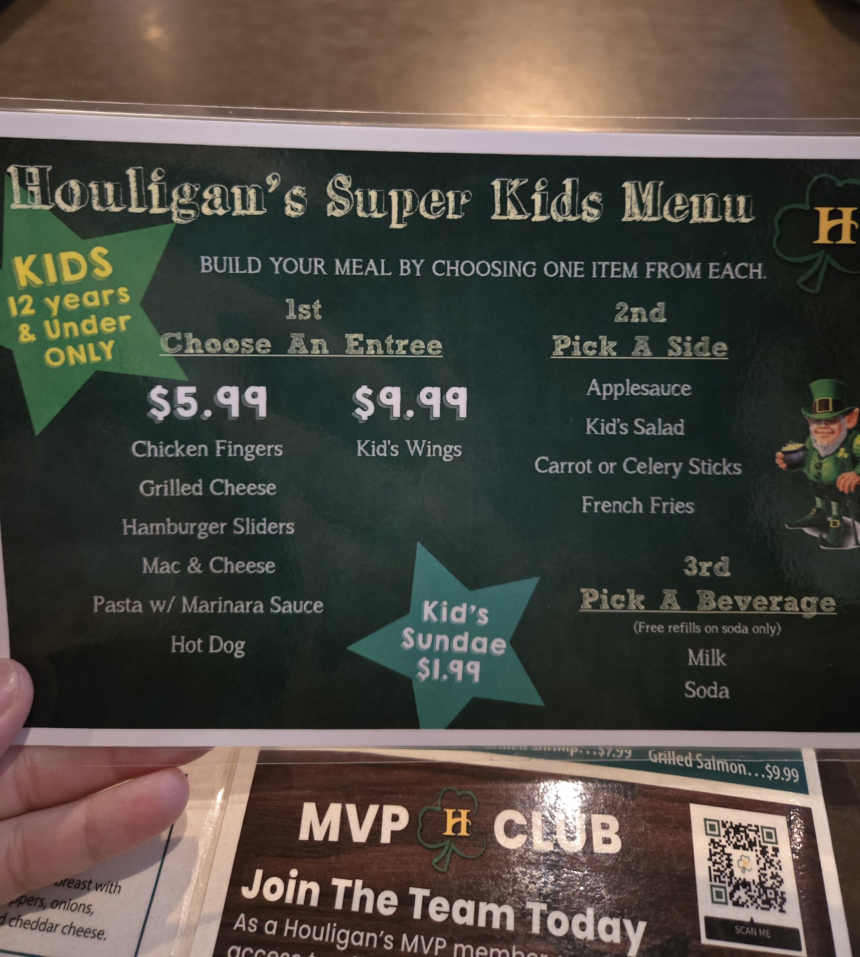 Read moreOk place. The Houligan's off US1 is 100% better. This Houligan's has ok service and food. The hostess was a young lady that made even a funeral parlor look like a fun place. You could tell she didn't not care about the customers and did not want to be there. She tried to seat us at a booth with dirty seats. We stood there for a moment and she asked was there a problem. Anyone with half a brain could see the food on the cushion. I advised her the seat was dirty and she looked at me blankly. I knew she didn't have a clue and told her to find another booth for us.