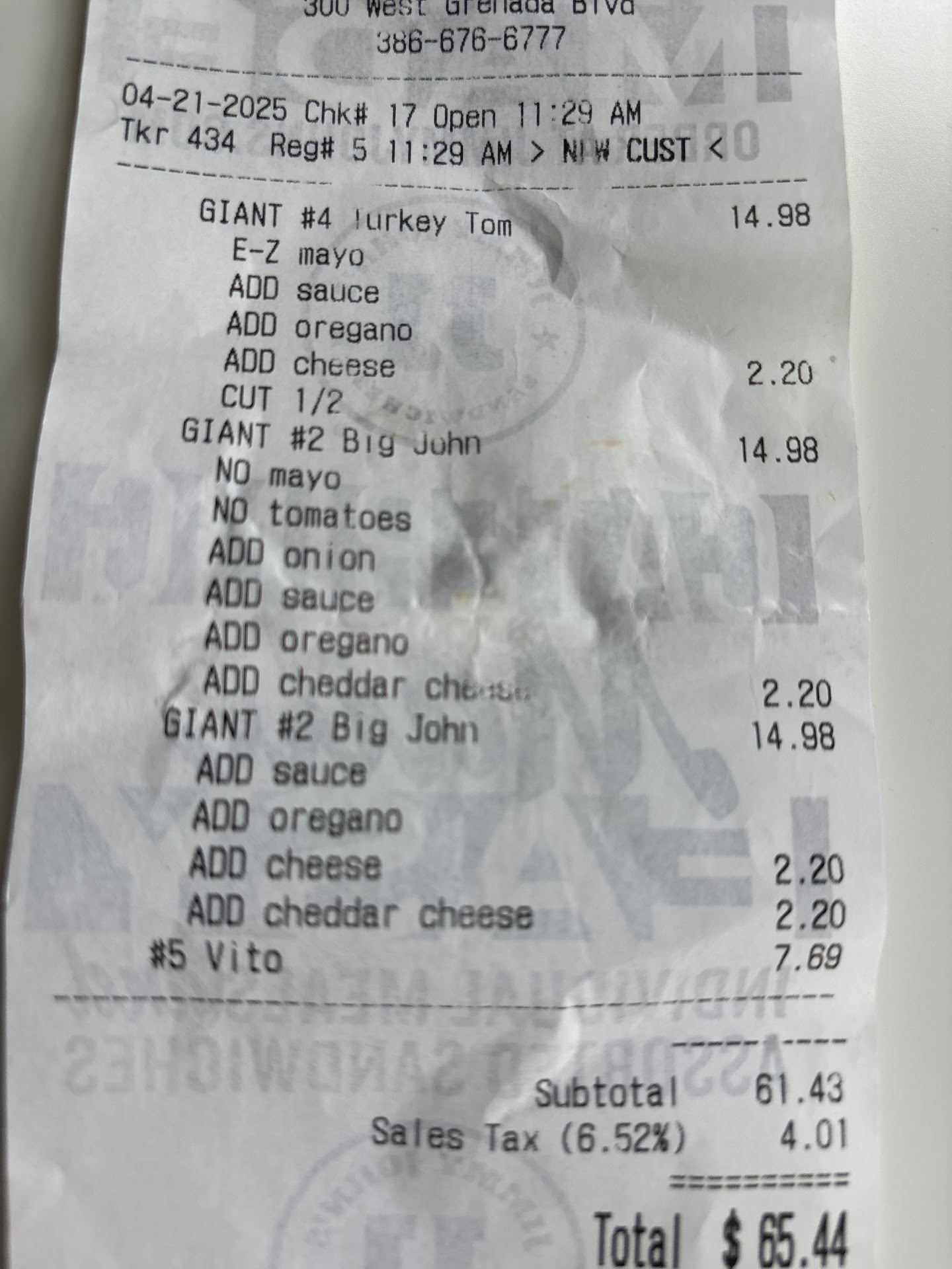 Read moreWorst sub I ate all year. Very industrial and just long mushball. Plus I stopped coming here because you guys are so fast you don't listen to the customer. I'm not blaming the employees, it's the Jimmy John training, talk so fast so the customer can't get a word in. I asked for extra extra extra cherry peppers. I guess 6 peppers is extra extra extra. You could count the strands of shredded lettuce. Doesn't the lettuce hold the sauce and the seasoning? Mushy tomatoes that tasted like yesterday's bunch. I only ate here because my local sub shop on Mason Ave was closed but never again! I would have been better off getting a hot dog at 7-eleven and I would have saved $6. Jimmy John should stick to killing Lions in the African safari, his sub making is just as bad as his...
