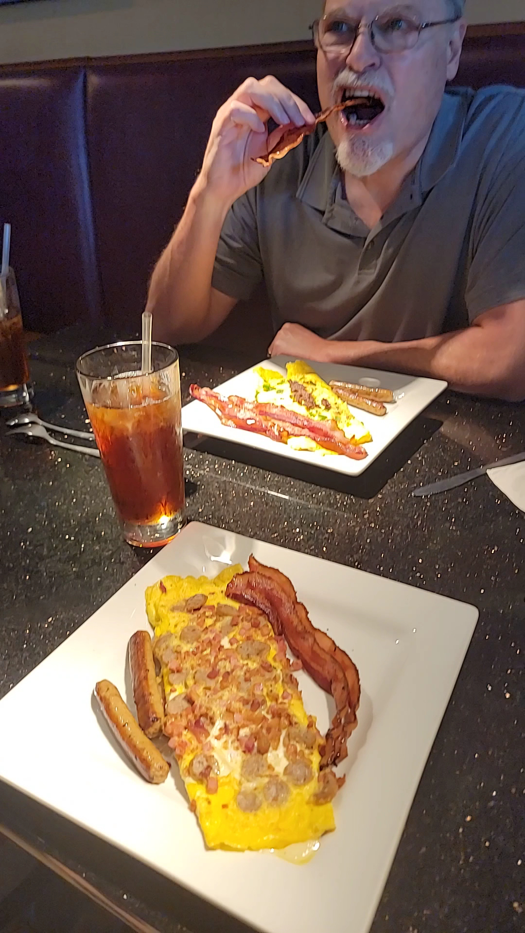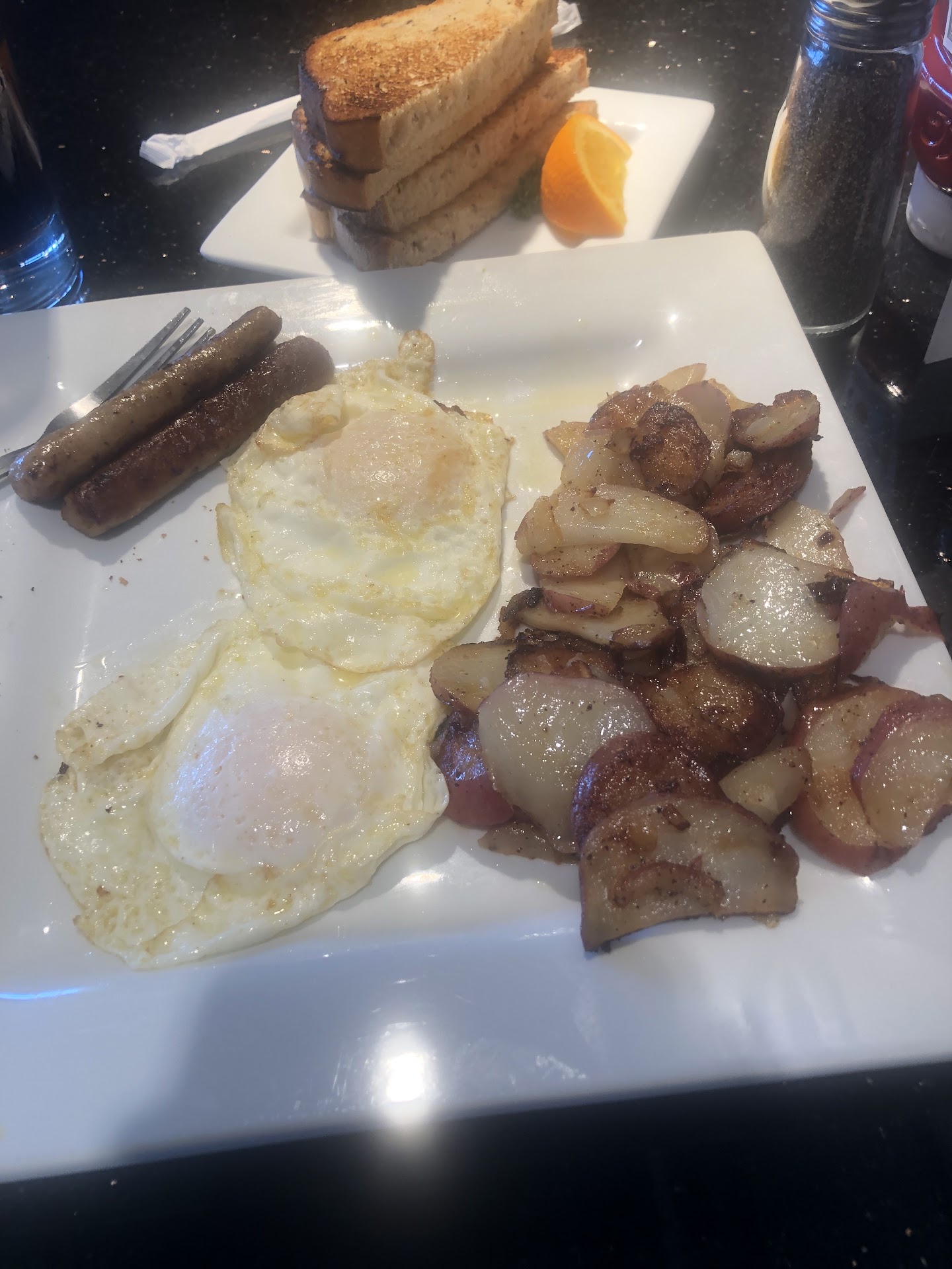 My grandma ordered French toast home fries and bacon. After waiting the 45 - hour for food. Grandma gets her food with just a piece of toast and an orange slice. Then another 10-15 for the home fries.