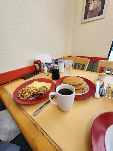A nice surprise and not to far to go for a pleasant breakfast experience. First time customers but definitely will be repeaters. When we walked in we were greeted with happy and smiling faces. So far that was worth the drive ok let's order. Our waitress was super friendly and had a great personality. She complimented on my wife's shirt so that gave my wife a nice smile. Ok well first the coffee was very delicious and very hot. My wife ordered the veggie omelette and said it was delicious but a lot so she couldn't finish it all and usually that's where I come in but I to was stuffed. I ordered the country fried steak and eggs and again very delicious. I had difficulty finishing mine but I pushed through. Lol We both like when a waitress or server brings coffee without being asked and keeping our table clean of empty creamer containers or what ever makes all the difference. We were full so we paid the bill and we're thanked for coming in and we thanked them and replied we will be back. As far as the price we paid, you know what they say "You Get What You Pay For " by no means was it cheap but we enjoyed every sip and bite. Now you can go in an order less expensive items that they offer so by all means do so you won't be sorry. I almost forgot we were offered coffee to go. What a great little...