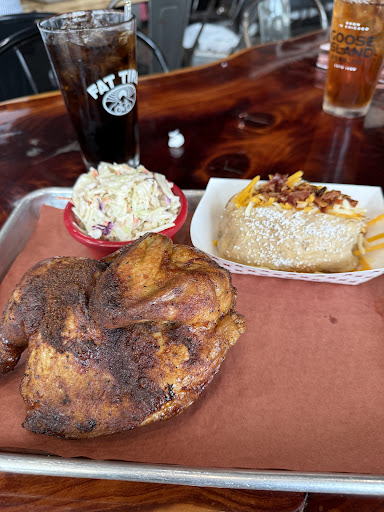 Read moreDecided to stop by for lunch during a trip to Daytona Beach. We were actually undecided on a place to eat and visited the Antique Mall, Dunn's Antiques, next door and smelled the food. It was just after their lunch rush and we were greeted upon entry. We were sat in a corner table, which had a wobble to it. The server, Chris, was very cordial and accommodating. He took our drink order and we needed a little extra time with the food choices, as they do not have BBQ on their ribs and I cannot eat it with sauce smeared over it and not cooked in. My soft drink tasted like dish soap and her sweet tea was over sweetened. My wife settled on the brisket combo and I had the half-baked chicken combo. When ordering we were informed there was an upcharge due to "a market price change" of $2.00 for each entree. Either way, we agreed. The food came out very fast, which would normally be a good thing; however, nothing we ordered came out hot, but rather lukewarm. She received two slices of brisket that needed a lot of BBQ sauce to be edible with a cold dried out sweet potato and baked beans. She stated the beans were the best part of the meal. My chicken was adequate, but the crust was more soggy than crispy and both the coleslaw and loaded baked potato were lacking with the coleslaw being dried out with very little mayonnaise and the baked potato being so cold as to not melt the cheese after 25 minutes, so I requested the mac-n-cheese and a replacement potato, which Chris gladly brought. The Mac-n-cheese was a little better, but not by much and the potato had melted cheese this time. All and all I would have to say the best part of the meal was the 15% military discount. If I had to recommend a place to eat, it would have to be the cafe attached to Dunn's Antiques next door, as they have...