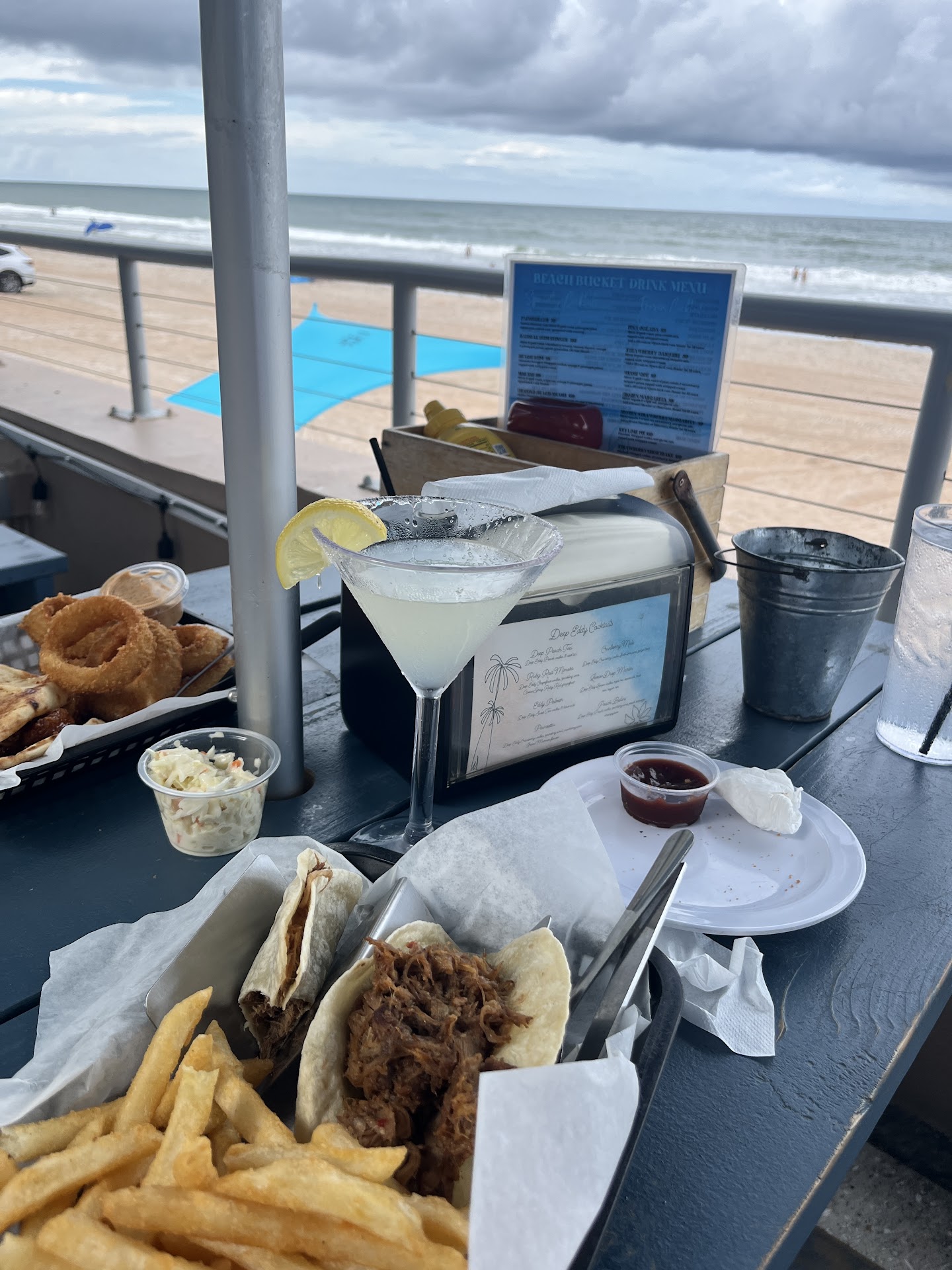 Read moreGreat view, the exact location was not clearly marked or easy to identify by signage. Rather, its located behind a motel next to another restaurant on A-1-A. The parking next to the Beach Bucket was full so we parked in a beach-lot 1 block north of the eatery. We visited the Beach Bucket mid-afternoon on Friday May 26, 2017. With a broad range of table/seating available, we were seated almost immediately.
