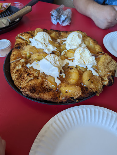 The place is constantly busy, and there is always a line! For a small shop out in the middle of the road, it is not doing too shabby at all. They have small outdoor and indoor dining, just unfortunate with COVID it's not completely open. However the decoration is cute, and definitely a spot to check out whether it's to go or for walking and eating while checking out the rest of the small shops by the pizza place.