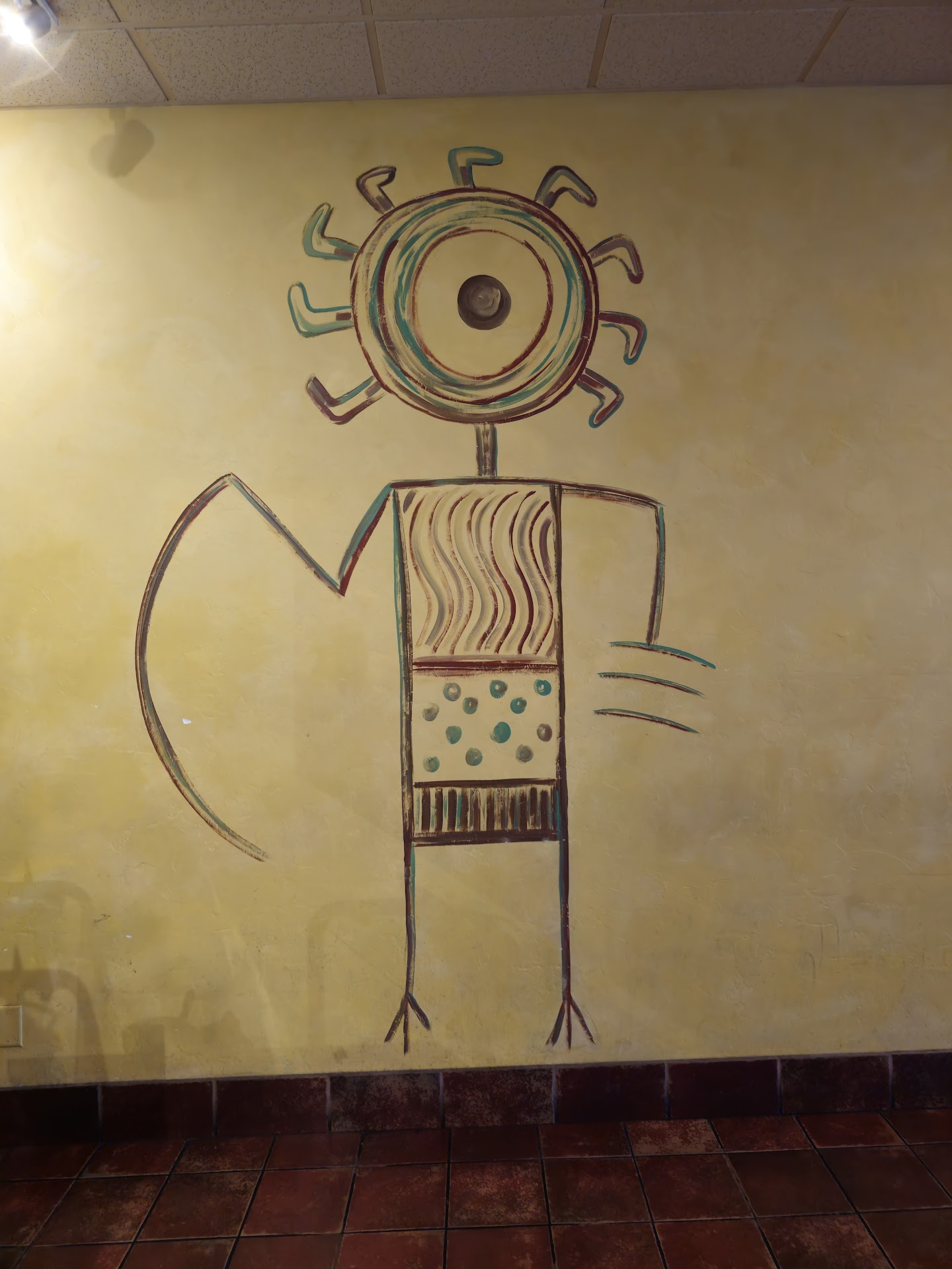 Let's talk about the architecture here. Baggin's feels like it belongs in a cold part of New Mexico, so it feels odd being in the Sonoran desert. There is a large fireplace which takes up an egregious amount of space here. It makes the place feel closer and unsettling.