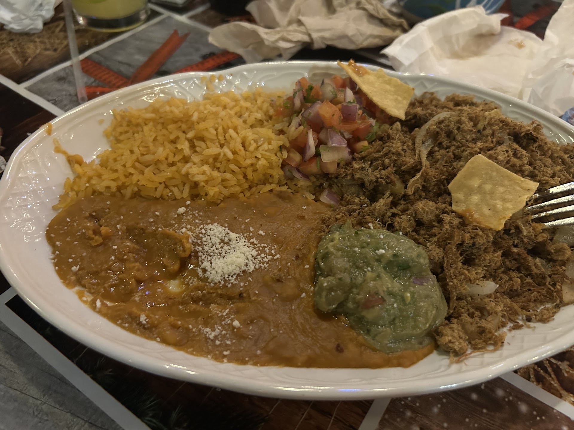 Read moreEver since moving to Tucson we have heard of the famous El Charro Cafe and wanted to try it. Let's start with the good - the food was really yummy! Cabbage and turnips on tacos - yum! The quest fundido had really great flavor with the peppers and tomatoes. So delicious. But the rest of the experience was sub-par at best. Service was pretty horrible, in fact. We called when they opened to request reservations for 4:30pm for 4 adults and 3 kids under 2 years old. We were told they don't take same-day reservations but that they are always dead at that time and we'd be fine. We walked into the restaurant at 4:25 & were told that all of the high chairs were in use; could we try a booth and use boosters instead? Sure! So they sat us in a booth too small so I sat at the end with a chair while we waited on the boosters. 15 minutes later we still didn't have the boosters so I went back to the hostess to ask. She said yes and that she would bring them as soon as she sat the next people. 10 minutes later we still didn't have them and this time my Dad went to ask for them and she informed him that they were now out of boosters.