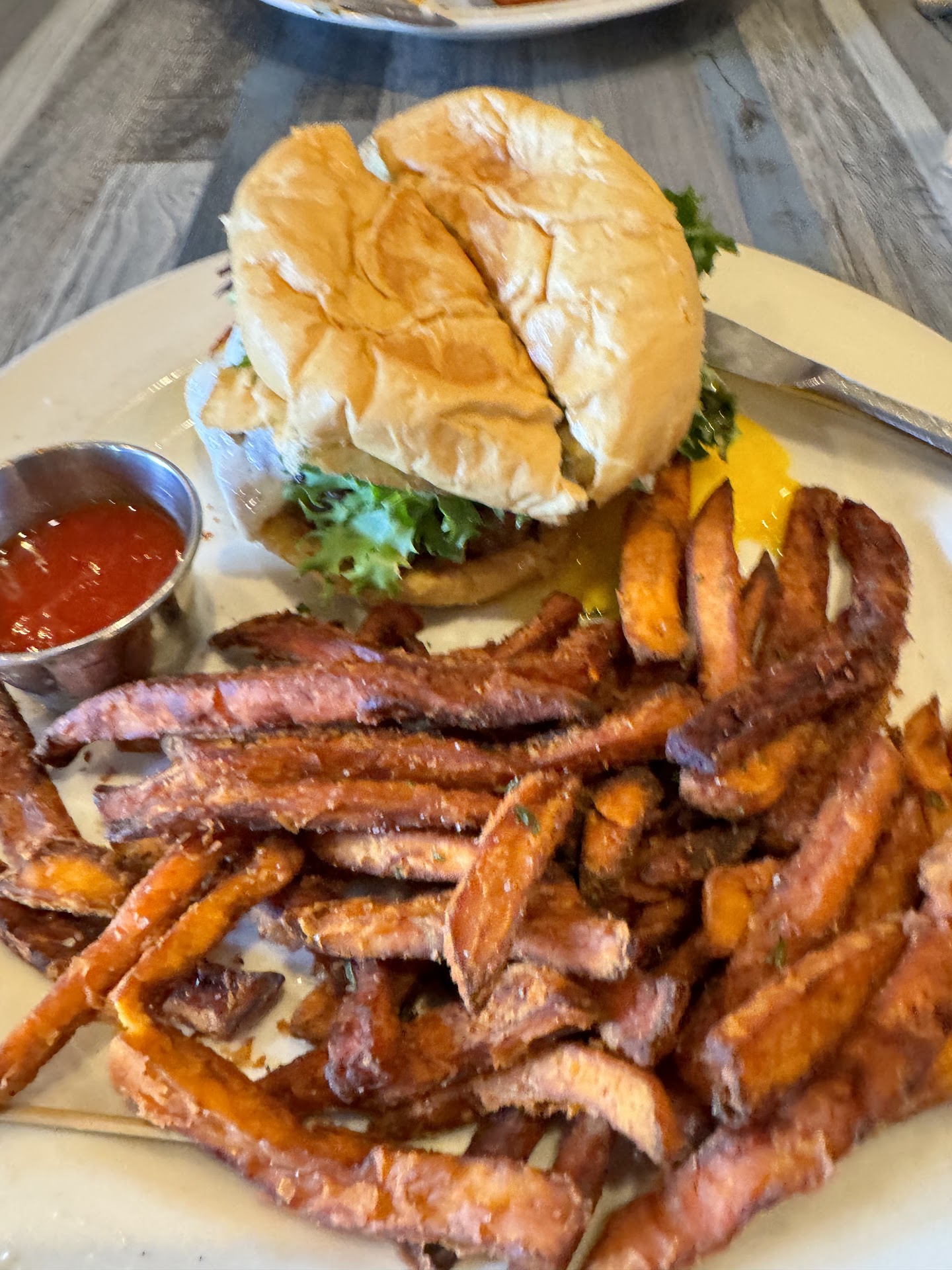 Both times the hamburgers were great, and the sweet potato fries the best around (they seem to be made fresh, not taken out of a bag like Jerry Bob’s and most other places).