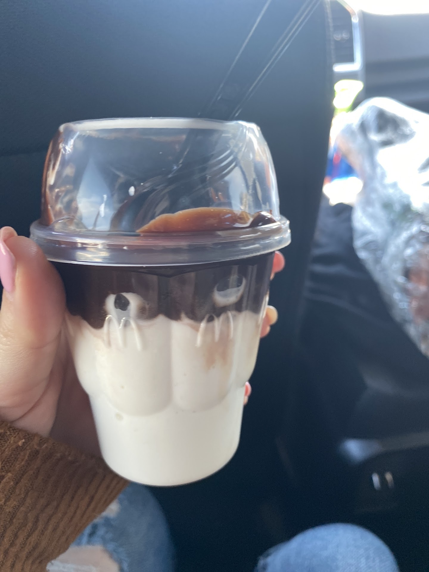 It was Ok. The smoothie machine was "down" IE not working and instead of the manager or supervisor emptying the ice and clearing the blades, she got snippy with the employee and said, "it's still not working". You could hear the blades were jammed... I then tried to order a pumpkin latte at which point, this same supervisor or what ever she is, then interrupted the employee as he tried to explain why the pumpkin latte was still on the menu, yet unavailable to order. The young man was doing just fine with his explanation and was incredibly polite when the other person interrupted with an unpleasant tone (snotty), restated what the young man said and added, "there's nothing we can do about it" - yet, my husband and I had said nothing to imply anything could be done to resolve the issue. We were standing there, dumbfounded at how ridiculous this was becoming. The place was not busy at the time and nothing preventing anyone from clearing the jam. Regardless whether I wanted a smoothie or not, in my opinion, when management is rude and permits sales impacting issues such as jammed blades or selling fries that have well passed their sell by time, to continue, begs the larger question - if she doesn't address minor issues, what larger, more important items are ignored? Lazy is as lazy does and that can be pretty filthy.