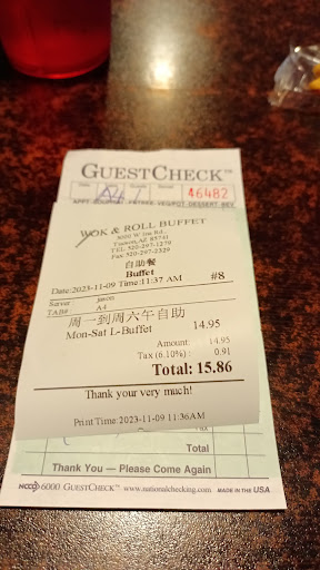 May, 2022. She wanted try Wok & Roll for the buffet. And crab legs for me. We arrived approximately 6:00 pm on a Sunday night. The place was busy, and we were able to get a table. The food was amazing. This is the best Chinese buffet in Tucson. Loved the crab legs but the kitchen was slow bringing out crab legs. And when they were out, ppl near the buffet were 1st to grab. Later that evening ppl were leaving so there was plenty of crab legs. We live 20 minutes away but it was worth the trip. And we'll be coming back for more