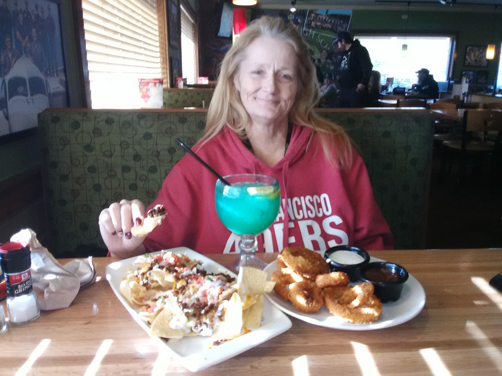 Read moreOkay, We order an app and drinks to start. I ordered a strawberry margarita it came to me just a regular, premixed drink. We ordered the wonton chicken tacos it came with some off the wall white sauce, witch is not the regular sauce at all. My husband's stake and shrimp came with a pinch of fries and a whole head of broccoli, witch he didn't eat at all, I order the oriental chicken salad witch came with one crispy chicken tender. After dinner we still were hungry, yup still hungry after an app and 2 dinner entrée. We ordered 2 different apps the pretzel and beer cheese that came out with alfredo sauce that was do salty and so loaded with garlic that we didn't eat it. Our other app was over sailed chip and artichoke dip that you couldn't eat at all. The waitress totally noticed and didn't offer us a discount or take off anything to make up for the poor food. I Paid $100 ( with tip ) for a totally disappointment. I ended up leaving and going down the street to McDonald's. Never will we darken the door way of this establishment again. BAD FOOD, ITS A NOPE, SPEND YOUR...