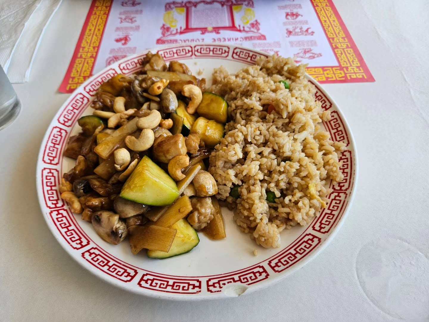 I ended up getting from here two days in a row. The establishment is very lovely, and the food is delicious and exotic, though the Chicken Cashew dish was a bit too salty, but calling it "authentic Chinese" is a stretch. They have some good lunch specials, but at least if you do takeout, they put more chow mein in your box then meat. And the meat ratio you get when you eat in, isn't much higher. Speaking of meat, I think it's stupid that you can't customize your order. If you want a certain kind of meat, the management decides whether you're having rice or chow mein with it. This is the biggest reason it's not...