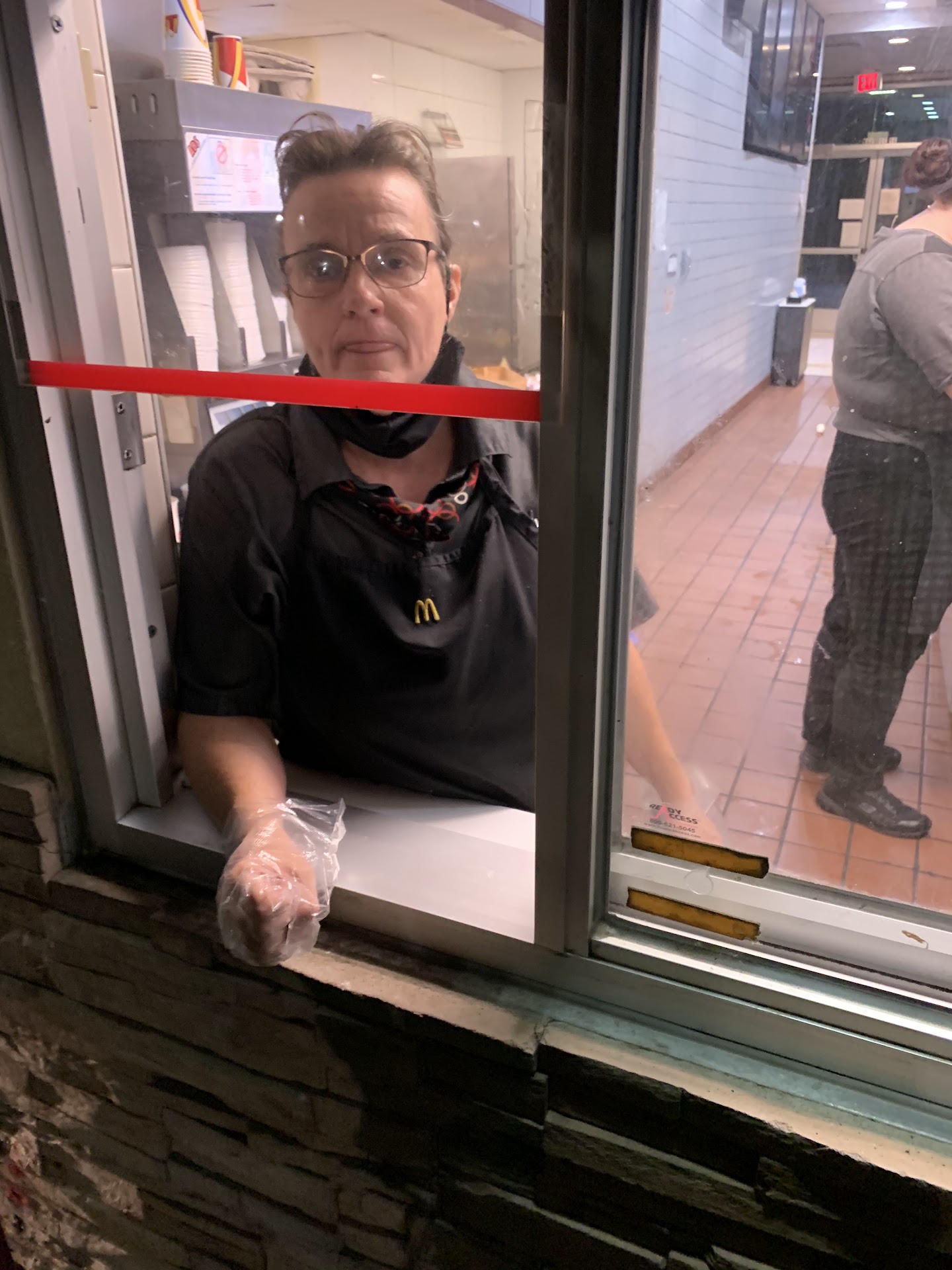 Not a hairnet in sight, nor a hat on the head of the person who served us, who wiped her nose on the crook of her elbow while we were at the window waiting for our order.
