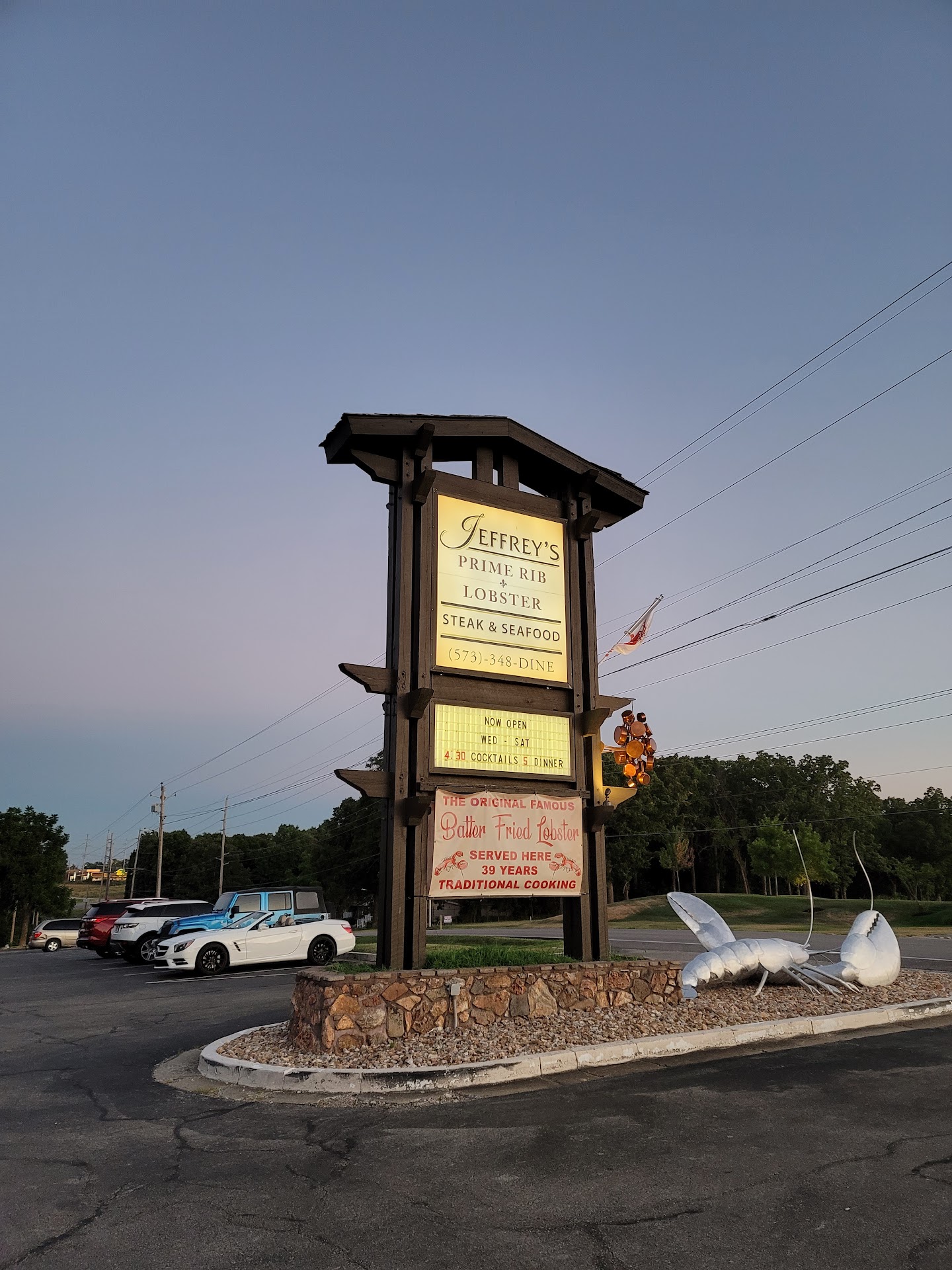 Read moreWow! So much I want to say about this sparkling gem in the Ozarks. We had no knowledge of this restaurant beforehand. Staying at the nearby Margaritaville resort, we just drove by and saw the sign. We noticed the inviting exterior and planned to give it a try. I looked at their website and called for a reservation. They're only open Wed thru Sat for dinner. I now know it was one of the owners I spoke to who told me they weren't taking reservations, it was first serve only. I was a bit nervous when we arrived to a full parking lot, but had no other plans, so we went on in. We were greeted by the voice on the phone with a big smile. Mary assured us the wait was only about 30 minutes. Turned out to be exactly that. Boy was it worth the wait! You must check out my pics to see the evidence. Salad was served family style. Nice and fresh and you should try their house dressing. It's a pleasant creamy oil and vinegar mix. They bring a service of all three dressings to try. Though I didn't try the honey mustard. Was too taken with the house dressing. I noticed they feature lobster on the menu and it's all served battered and fried. I'd never had lobster that way. But I saw lots of servings hustled out while we were there. We didn't try any but will certainly do so next visit. The prime rib was excellent. Incredible touch - they serve it with Yorshire Pudding. So delicious and such a proper pairing with beef. They bring a pot of au jus to the table and will slather as much as you like on your meat. The creamy style horseradish was the best I'd ever had - and with a fresh sprig of rosemary in it... so many fine touches here to be noticed and appreciated. Like the 'loaded' baked tater I ordered. Usually, that means a tater on your plate with all the fixings sitting on top. Here? They bring your spud, the server cuts and spreads it right there at the table for you. And they bring all the fixings in little dishes so you can fix up the spud just like you want it. Plenty of all the toppings you could want. Everything was perfectly prepared and promptly gobbled down. If you've read my other reviews, KC's famous Hereford House is my gold standard for steak and prime rib. This place far exceeds HH. Not an exaggeration. I attribute it to Jeffrey and Mary actually running things and seeing to all the details. Extremely friendly and rightfully proud of their restaurant. Everyone seemed to be. Service was excellent. Try the creme brulee for dessert. They caramelize it for you at the table. Like I said so many fine touches here that make it such an enjoyable fine dining experience. You want another one? They have mouthwash dispensers in the bathrooms. Mouthwash dispensers. ...