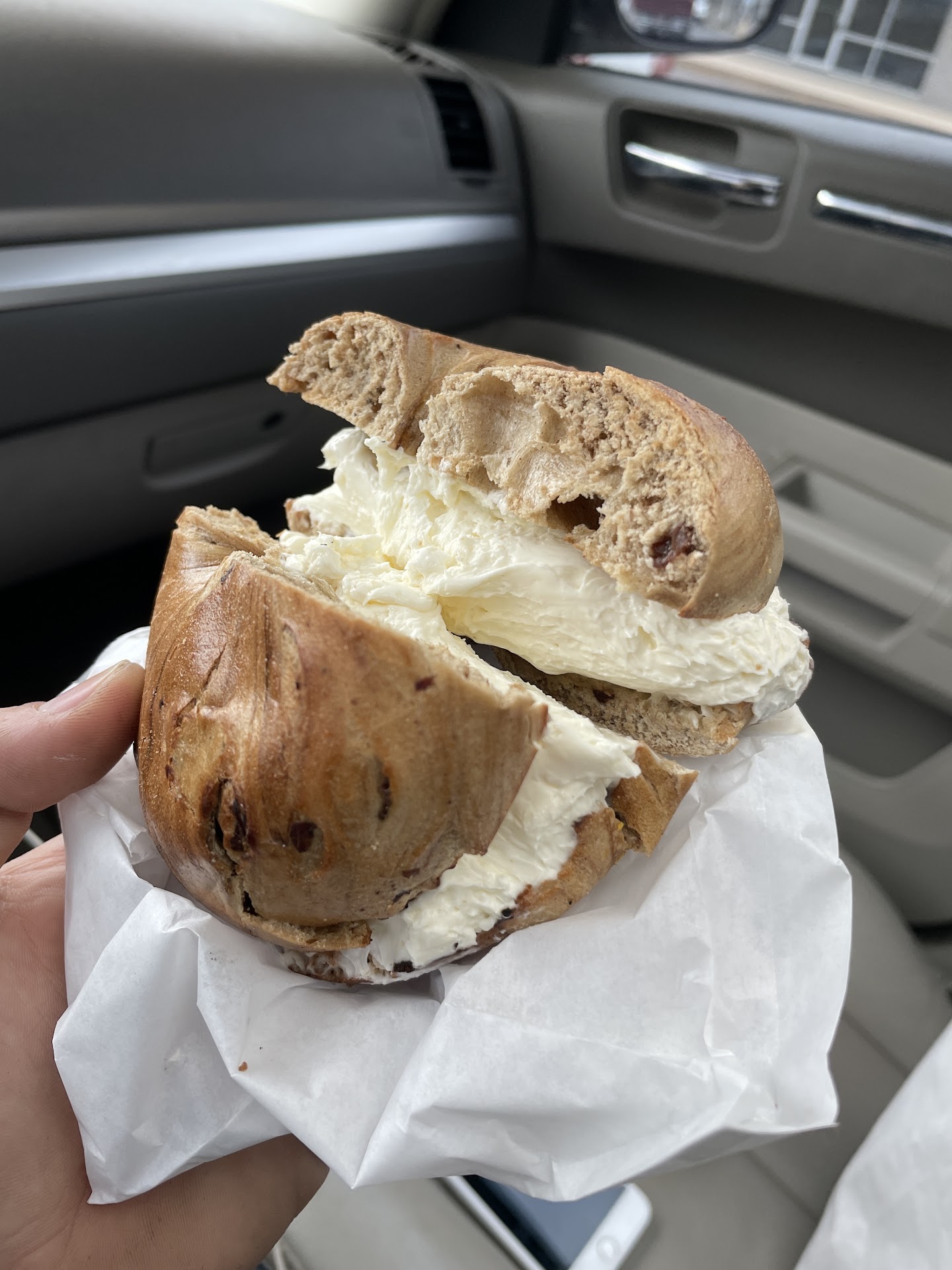 We ordered a French toast bagel with plain cream cheese and I got a beef and Cheddar on Asiago without tomato or saurkraut, add ranch. The French toast bagel barely tasted like French toast. Looked like it had about a pound of cream cheese (literally) and my sandwich ended up not only having tomato on it but it was either saurkraut or mayo on it so I ended up taking off the tomato and because of the sauce, I couldn't have the lettuce or bacon either.