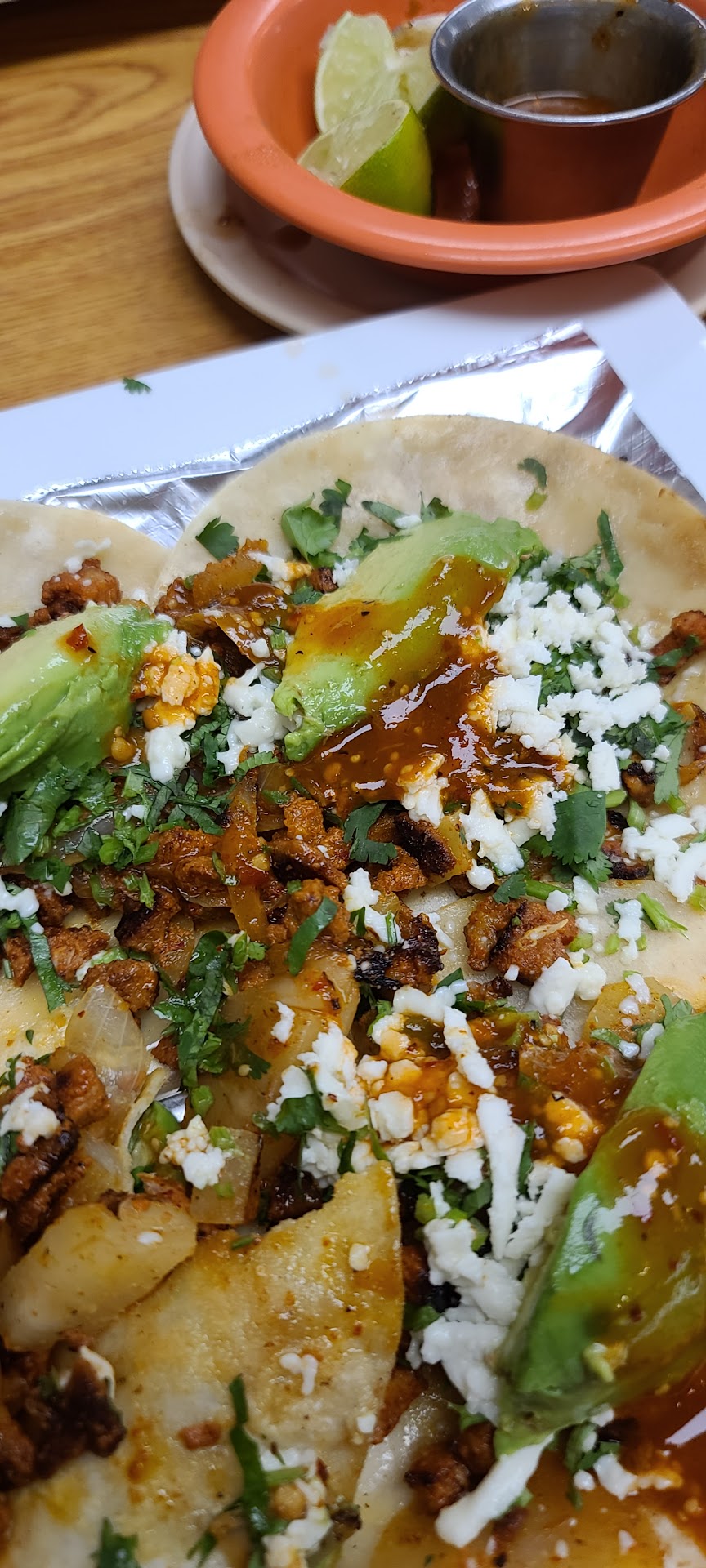 Read moreIt's probably the best Mexican in the area of this small town. The atmosphere was nearly nonexistent with the faint sounds of music. The staff was quick and adequate but far from being welcoming. We were served the complimentary tortilla chips and salsa along with 1 small bowl of a bean and beef soup. Since there were 2 of us I'm not sure why they only gave us 1. The salsa and soup were good and had a nice spiciness to it. I ordered the tacos al pastor which was just that. No rice or beans to accompany it. My dad ordered a taco salad with beef. My tacos were okay and had a little blandness to it. My dad's taco salad ended up looking a bit soupy at the end. He didn't finish it. Overall it was an unremarkable experience. I was surprised there were no tortas options there. Probably not a place I'd go again when traveling...