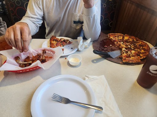 This place would've gotten 5 stars if the employees were properly trained. U can't fault the young newly waitress as she did her part but it fell on the kitchen and manager there. We sat down after another family. They ordered before us and we ordered cheese curds wings a med pizza and a mini pizza. Right after we got the cheese curds literally recieved med pizza and few min after the wings. Mind u the family hadn't even recieved their items yet. Then my husband finished his wings and half pizza and finally 10 min after he finished I finally got my mini pizza that was missing bbq pork. The family got their order minus 2 orders of wings they got after their meal was complete. I spoke with the cook which stated she was waiting on the manager to make more mini pizza crust. Which I explained if u don't have the order ingredients don't drop order in oven period u wait for pizza to go out together. I then spoke to the manager there which tried to blame the new waitress, which I told her she was doing her part and can't be blamed on kitchen stuff. The manager then said I'll speak to them. No apologies just Blame on employees which the waitress never ever blamed, she just apologized for all of them. Seems like she needed to train the manager in that aspect. In all my years at NPC doing all jobs in restaurant u never tell a customer and blame other staff members... u own the mistakes, make apologies and u check back up on the guests period. All in all, if proper training was established this restaurant will thrive and be great to the community. The waitress young inexperienced but pulled through has patience and will eventually be an awesome server in time. Management should always help where needed and schedule adequate staffing numbers instead of 3 people only on a Sunday. Also to making money u should def train to offer appetizers and desserts. I definitely would've ordered dessert but the new waitress was overwhelmed an very busy 7 tables which 2 was parties of 5. I really couldn't put that on her as I know her situation which is no fault on her but...