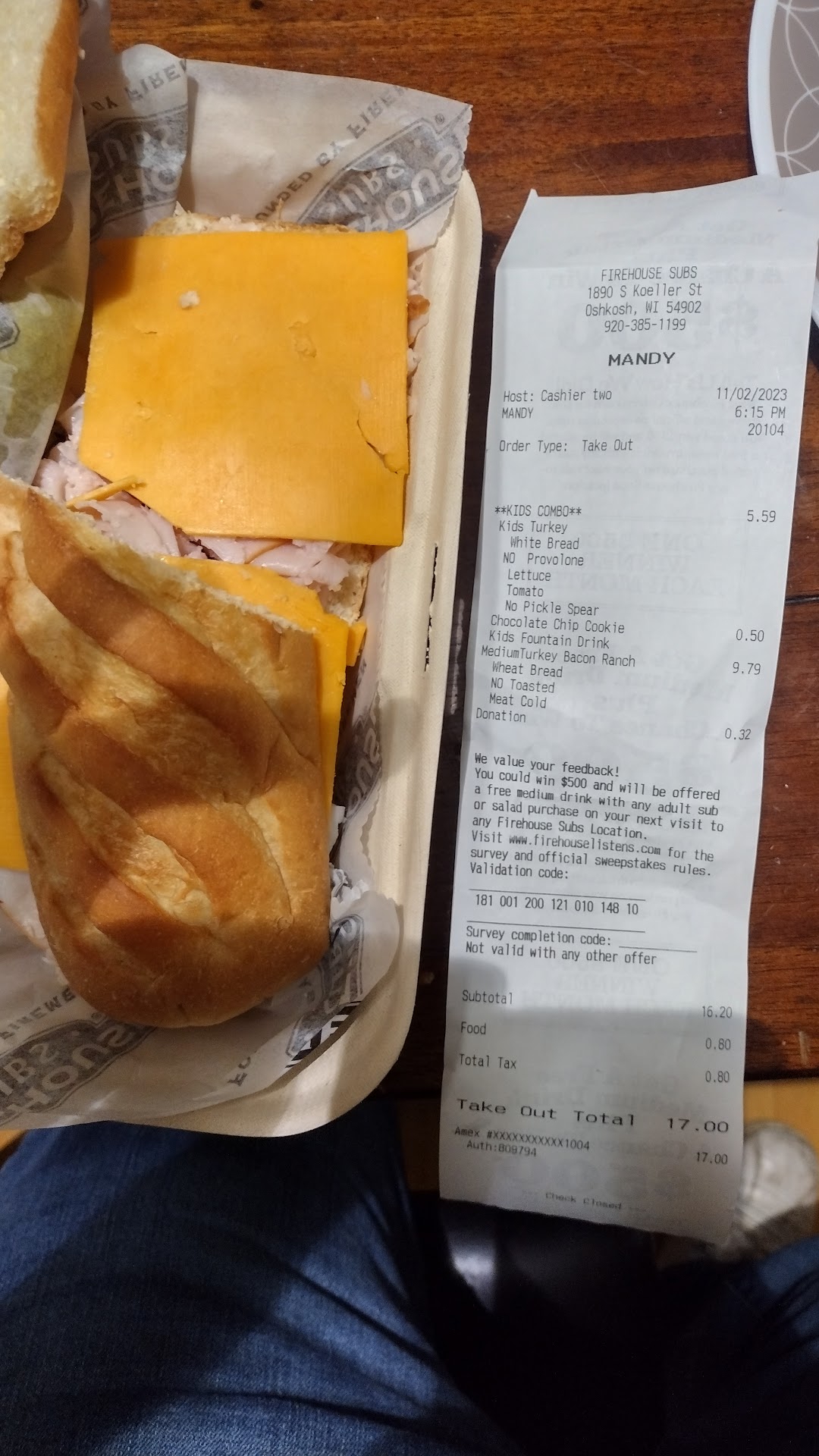 Read moreI don't normally give such a low rating. The food was just OK. The staff is required to say "welcome to firehouse subs" each time a customer comes in the door. The greeting was said with such unenthused voices - my son said they sounded dead inside. Better to have no greeting to than be forced to say anything. Made you wonder if they disliked working there so much how was the food going to taste. We ordered the chicken and dumpling soup as our side. The container was only 1/2 full. When I questioned it I was told no that is the bowl size not the cup size. Very disappointing. But maybe it was good that we got such a small amount because it was TERRIBLE! It tasted like plastic - like it had been put into a plastic bag when it was hot then sealed tight which made it take on the flavor of the bag! My son worked at one of the better restaurants in Oshkosh and he tasted it and said yeah he got that same flavor and it didn't really taste like chicken. Avoid the soup if you go. might try a different location for the sandwich but never...