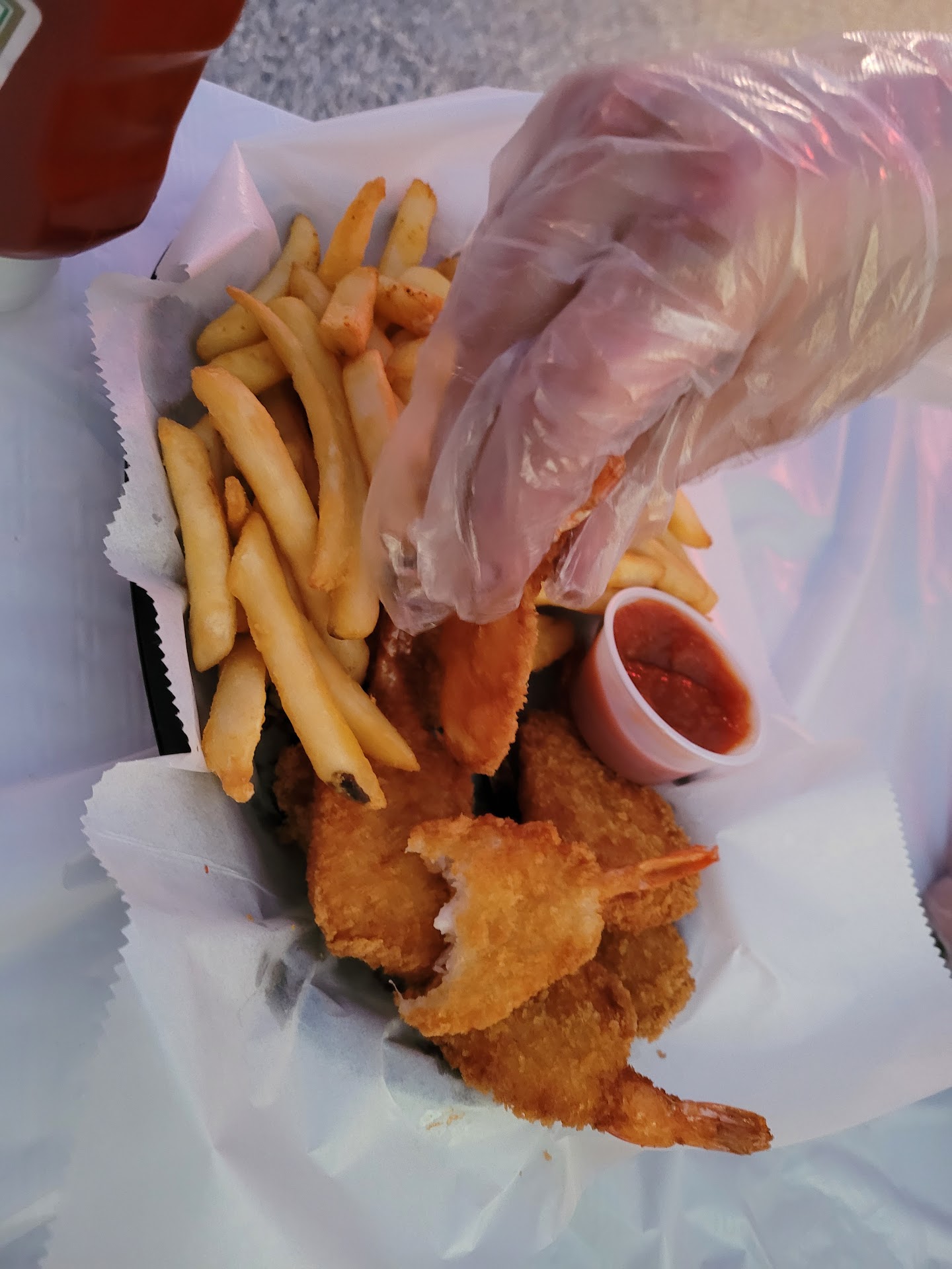 2/5. 1lb shrimp (without heads) in tomato based, house special sauce. Amazingly, food is packaged in a double lined clear trash bag and after tasting it, it was conveniently thrown out. Generous, large, 19 shrimp meal, tasted as if it was ruined by over cooking in water and post mixed in their mild sauce. It is quite difficult to peal off the shells, leaving sauce behind from plain shrimp. The sauce leaves a greasy residue on uncovered hands that requires a soap hand wash (not just napkin wipes).