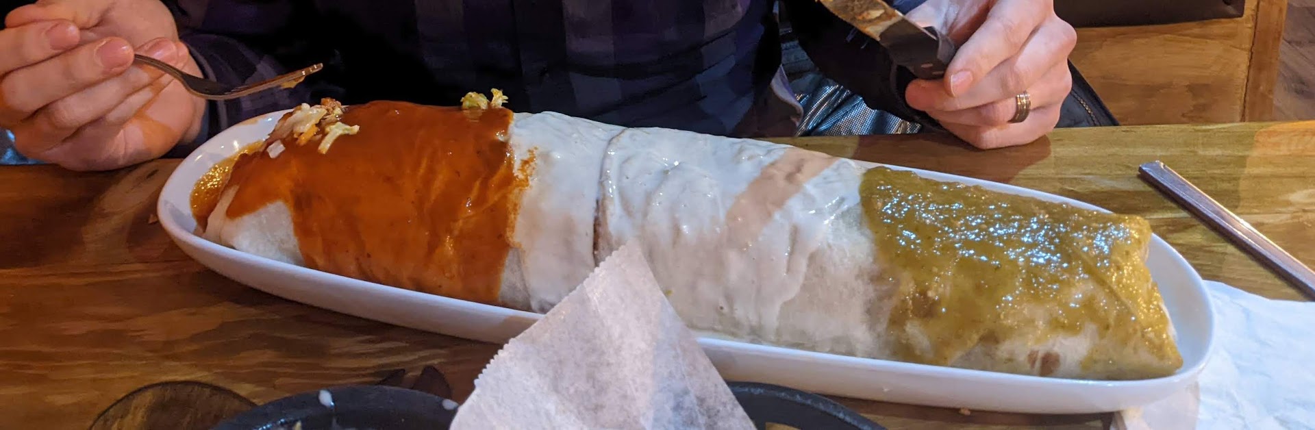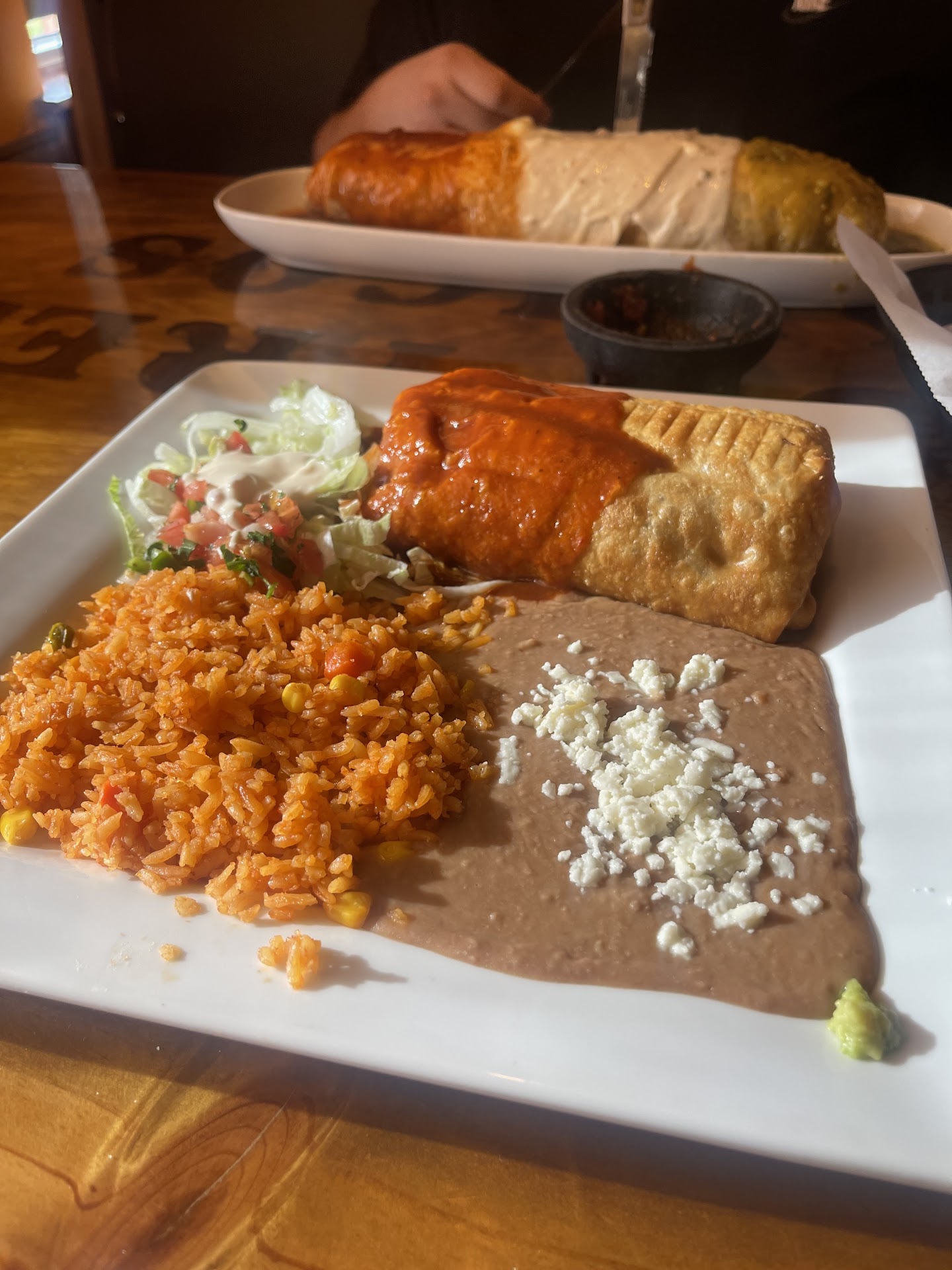 I just ordered a beef chimichanga and I might have read the menu incorrectly, which I couldn’t find a online, but I was expecting the white cheese sauce on it instead of a red sauce. I will say it was a lot larger than the ones I normally get. I wasn’t super happy about the sauce but I figured I already had the food so I would eat it anyways. I started on the side that didn’t have the red sauce and worked my way to it.