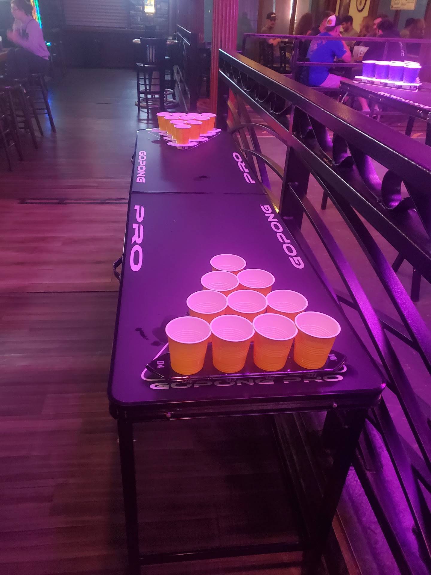 I have not eaten here so I cannot comment, I was surprised to hear they even had food options. This is absolutely a college bar, and currently, the most popular (fri/sat nights and ladies night occasionally). It gets extremely busy and has a prominent dance floor area elevated and centered that gets busy. Usually a live dj is on sight.Can be a ton of fun. As someone commented, the floors can be extremely sticky. It can be an absolute nightmare to traverse this bar when busy, especially to the elevated bar. Sometimes you have to downright force your way to the bar. At this point you have to pray a bartender sees you or doesn't know many people waiting for drinks because it can be a wait. The night usually ends with a fight out front and the cops arresting everyone in sight ( they basically just park a couple squads out front from 1am on; you know: they're useless). All in all: Can be a great time if you're young or...