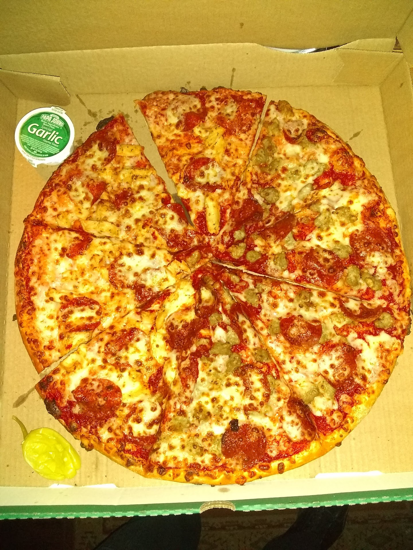 Read moreThey were the best of times and the worst of times. As I entered the pizza order into the app, I selected the NY Style deal with one NY Style and one Stuffed Crust. I was hesitant at first, but apart from the slight anxiety I felt for using the deal, I pushed through and hit order. Whew, a relief swept over me in my decision to order. When the pop up arrived in my app stating that I could monitor the progress of my food being created from the freshest ingredient by the most competent pizza artisans, I was excited. As the pure anticipation pulled me in all directions of emotion, I kept it together. I saw my food was ready so I proudly told my wife, “I’m going to go grab the pizza.” She replied with a resounding, “Whatever.” Out the door I went. As I pulled up in front of the store with the anticipation of a puppy with a treat on its nose, I took a deep breath and headed inside. I was greeted by two smiling faces, they handed me my order. I smiled and thanked them for their knowledge and generosity. I left, feeling an odd mixture of senses, mostly sadness as with the turnover rate in employment, I may never see these two artisans again. Ah well. I took the pizza home and ate it....