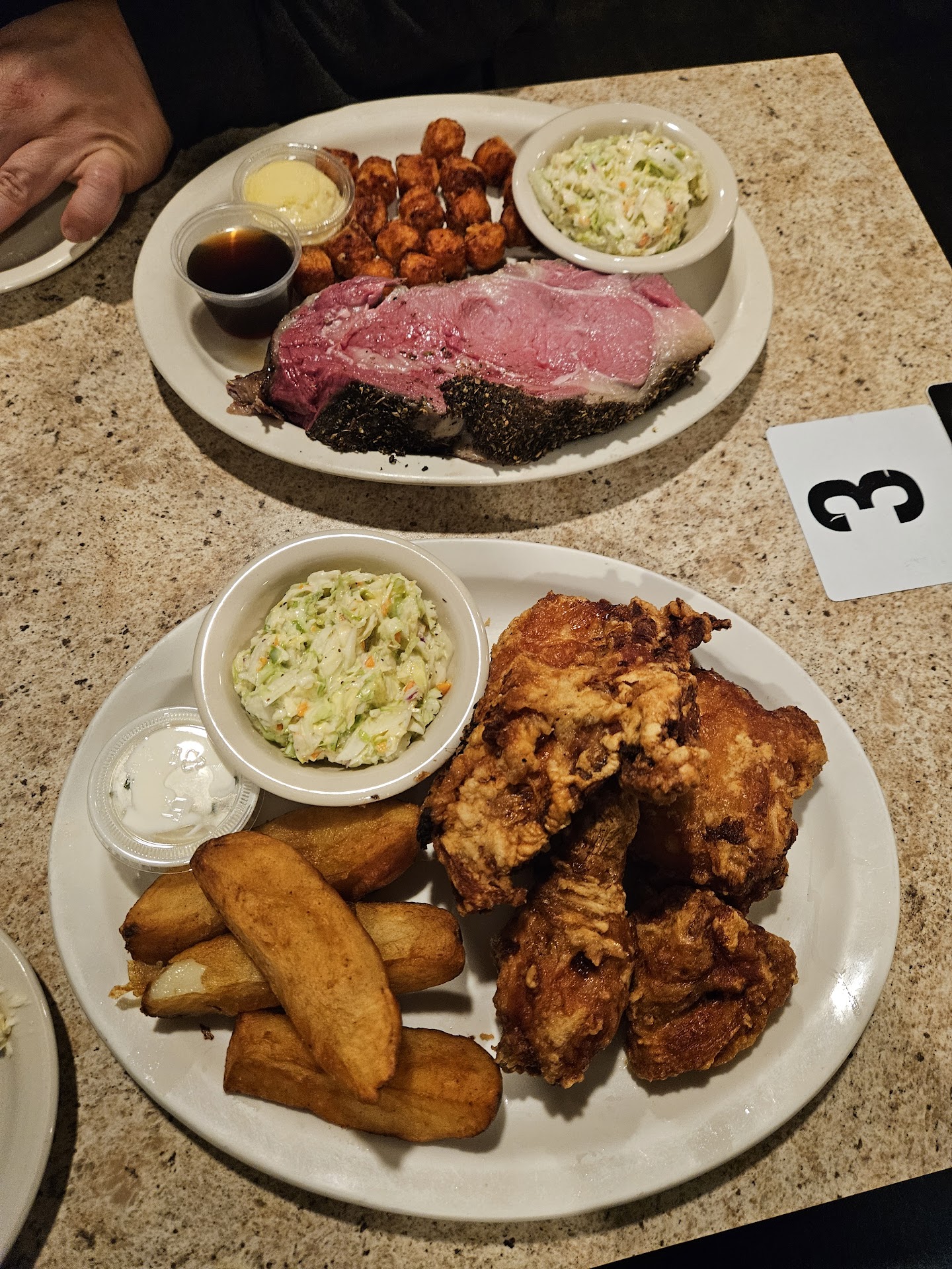 Read moreDid a takeout order, had to repeat order 4 times & they still forgot part of it. Thankfully my husband checked before we got all the way home. Called & had to go back but the guy never had it remade, so I had to stand & wait, only to walk out with a burnt grilled cheese, after again standing there waiting because he never had it made the 2nd time either. Order fries, nowhere does it says fries are Cajun, but that's what we got, so those went in the garbage as spicy food can't be eaten. The prime rib was extremely over cooked, more than fully cooked and ZERO flavor, the broasted potatoes, we would have had the same taste as just eating a raw potato. The only thing that wasn't terrible was the coleslaw slaw & cheese curds. Now let's talk about when I walked in.... bartenders standing around scrolling their cell phone, stood their 6 minutes before even being acknowledged. People with empty glasses & the bar was disgusting dirty. And When I had to go back the 2nd time the bar was still dirty. My husband was so excited to try this place, ended up very disappointed in all of it. I wouldn't give any stars if that was an option! Definitely not worth the...